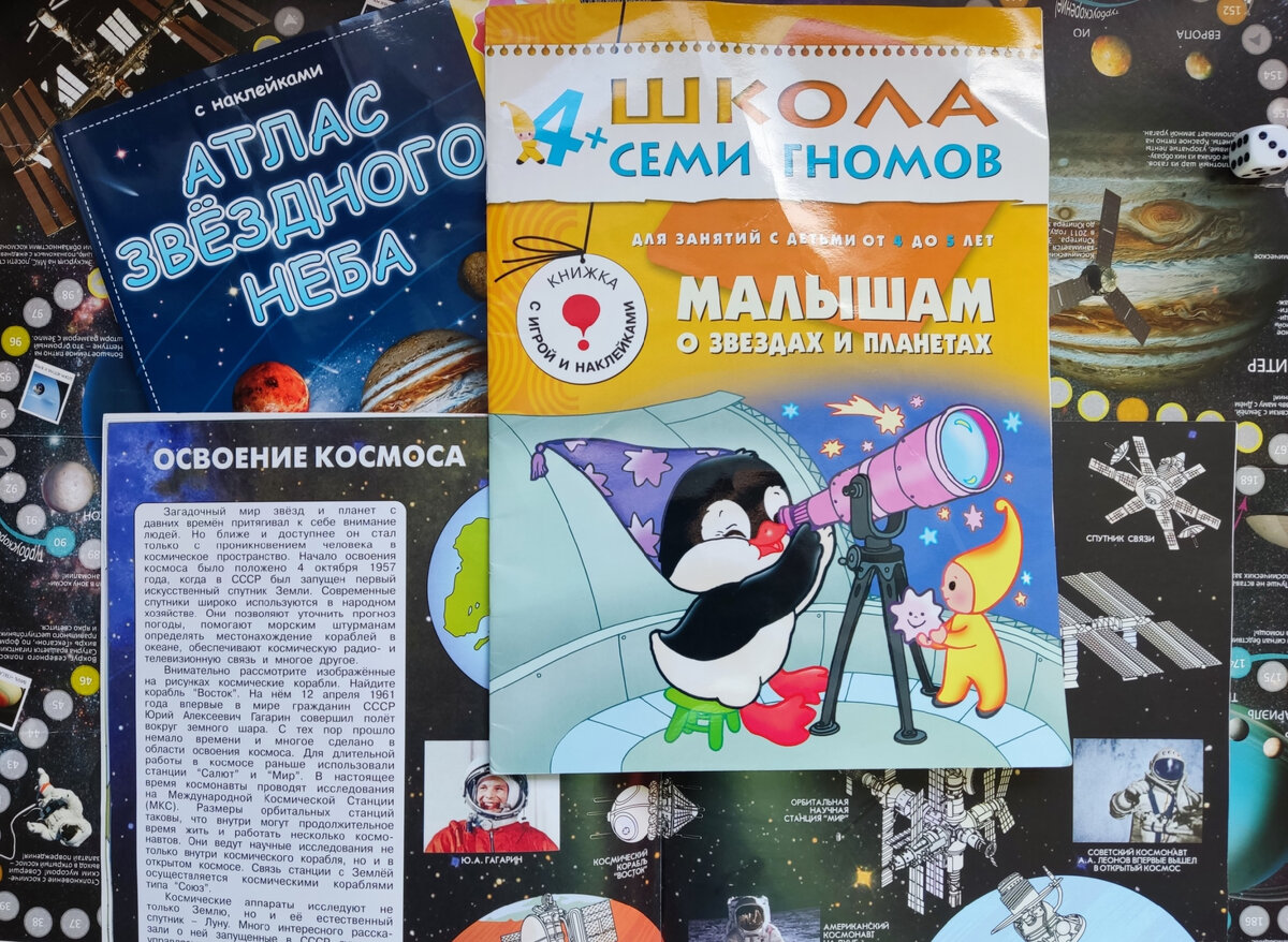 Скоро 12 апреля. Отличный повод провести тематическое занятие и рассказать детям о космосе. Тема хотя и интересная, но сложная, ведь предстоит рассказать о чём-то далеком и загадочном, о том, что невозможно потрогать. Поэтому лучше всего провести занятие в игровой форме. Что для этого можно использовать 1. Любые качественные книги о космосе. Для малышей выбирайте издания с простыми и понятными рисунками, адаптированными для возраста, для школьников возьмите более серьёзные книги. Начните с рассказов о солнце, луне и планетах. Покажите карту звёздного неба. На «десерт» оставьте освоение космоса. Космонавты и ракеты не оставят детей равнодушными. Для занятий с детьми старшего возраста отлично подойдет научная фантастика. Вечный вопрос: «Не одиноки ли мы во вселенной?» поможет ребёнку взглянуть на тему космоса под другим углом. Совет: не спешите покупать книги, для первого занятия возьмите их в библиотеке или у знакомых. Если космос «захватил» ребёнка, то выбирать книги для домашней библи