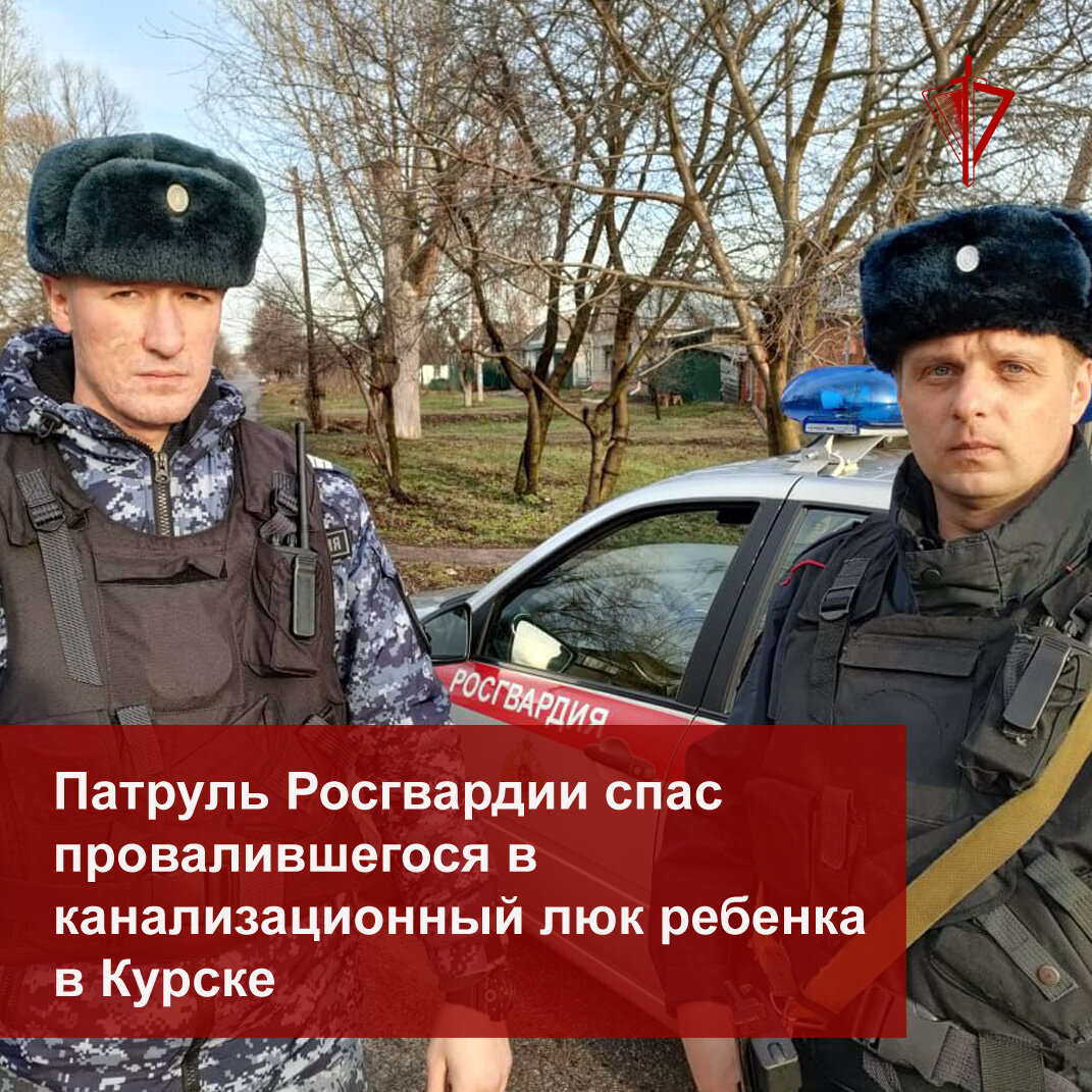 В Курске сотрудники вневедомственной охраны Росгвардии спасли четырехлетнего мальчика, упавшего в канализационный колодец. Во время патрулирования на Вокзальной улице росгвардейцы заметили обеспокоенных детей, звавших на помощь. Прапорщик полиции Алексей Гладуш и сержант полиции Дмитрий Тулинов поспешили к ребятам и выяснили, что их друг провалился в канализационный люк. Вызвав скорую помощь, сотрудники незамедлительно бросились на спасение ребенка: прапорщик полиции Алексей Гладуш спустился в колодец, достал мальчика и передал коллеге. Кроме того, росгвардеец поднял оттуда породистую собаку, которая, вероятно, также провалилась в люк ранее. В дальнейшем росгвардейцы передали мальчика прибывшей бригаде скорой помощи, он госпитализирован. Благодаря профессиональным и своевременным действиям сотрудников Росгвардии удалось избежать тяжких последствий для здоровья ребенка.