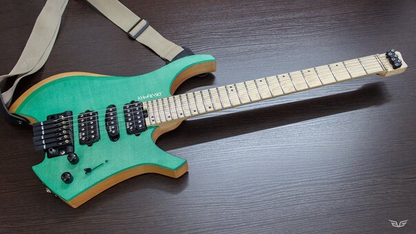Покрытие электрогитары и 0 порожек на примере этого инструмента. Сразу говорю – это не рубрика «Обосри чужую работу», наоборот, эта гитара, одна из немногих «мастеровых», которых я видел много, сделана очень хорошо. Надеюсь повторять не нужно. А фото я выставил для того, чтобы владелец внимательно за мной следил и не дал соврать. Но два вышеописанных недочета(я бы не назвал это прям косяками), хочу обсудить. Это даже больше обращение к мастерам, сталкиваюсь с этим не в первый раз. Покрытие этого инструмента очень странное, мне кажется, что шеллак или ему подобная полунатуральная смесь. Если я ошибся и это лак, то это очень плохой лак, особенно для муз. инструмента. Никогда не видел лак, который шелушиться эластичными лохмотьями, но смысл не в этом. Если не шеллак то больше тогда похоже на спецэффект типа софттач. Но поведение у этого покрытия схоже со всякими шеллаками, даже при обычной эксплуатации начинают плавиться от тепла ваших рук, а тут еще и аномальная жара, и это просто жесть,