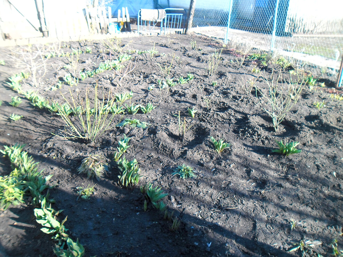 Ну наконец то по летнему тепло, сегодня на улице + 22, шла из храма, солнце, птицы поют, душа радуется, чего еще для счастья надо. Полчаса отдыха и я уже в своих клумбах, не сидится, ручки чешутся. Вчера я обрезала все свои розы, отгребла от них землю,, вообщем навела порядок, вечером заползла и даже не хватило сил что то писать. Осталось их подкормить и обработать. Очиток большой зазеленел. Живучка живая, а что ей случится, сажала осенью 21 года, сегодня 3 посадила на горку, пусть там расползается. На сирени уже набухли почки. Обрезала душицу и почистила от мусора. Шалфей после зимы, жду ваших советов, обрезать или нет Вот такая спирея, почки набухают. Мак восточный зеленеет. Птицемлечник, сколько я его выбросила и опять он по всей клумбе. Турецкая гвоздика, половину сожрали мыши. Тюльпаны подросли, скоро будут выбрасывать цветонос. Вот так п