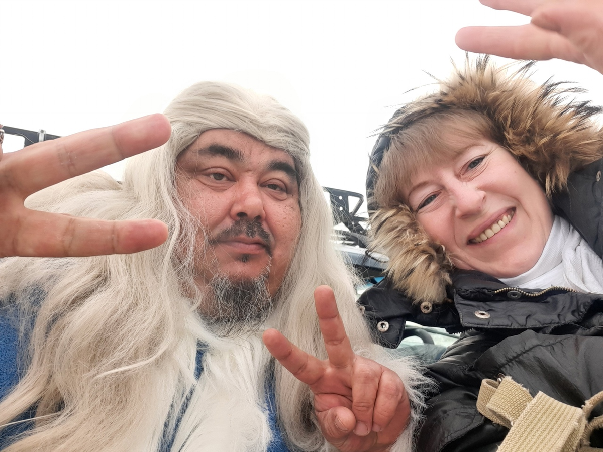 И еще эти местные в национальной одежде. Ну, то есть на них одето что-то типа красиво пасшитых парок из оленьих шкур.