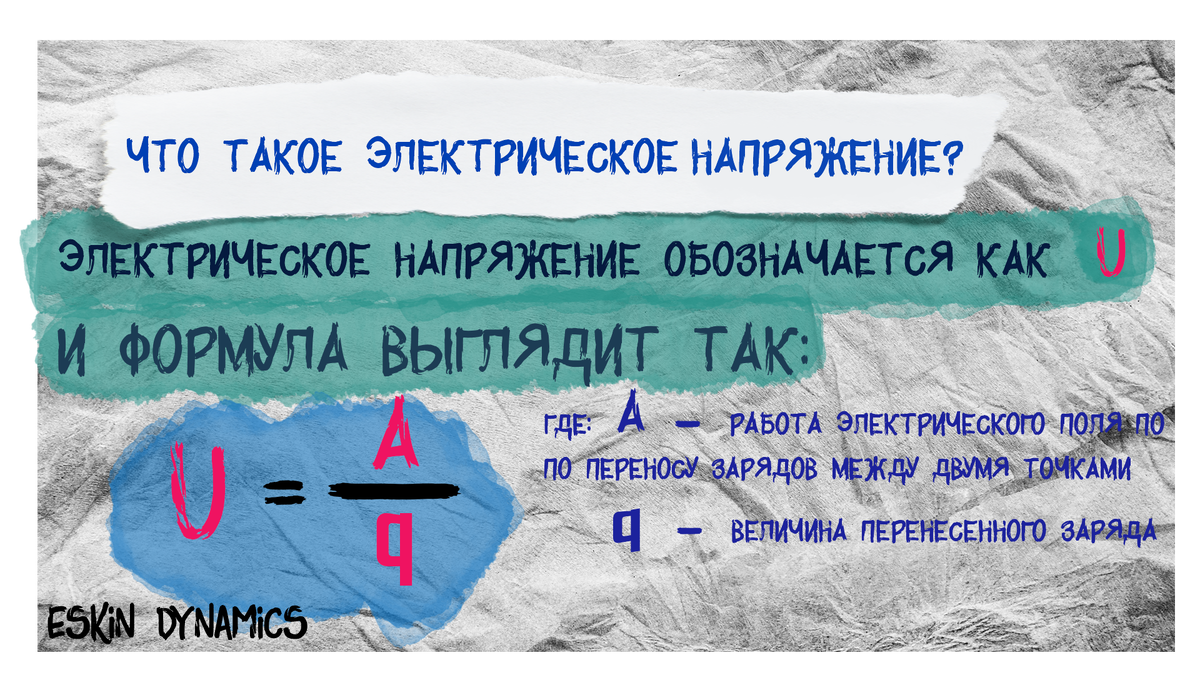 Надеюсь, вы прочитали статью про электрический ток и вам стало всё понятно. Теперь поговорим про напряжение! Ведь, чтобы заставить электроны двигаться упорядоченно нужно приложить к ним какую-то энергию извне. Такой энергией, к примеру, является электрическое поле. Электрическое поле создается источником тока и совершает работу (А) по переносу зарядов между двумя точками цепи. Посмотрите на картинку ниже. Получается, что напряжением (U) между двумя точками электрической цепи называется физическая величина равная отношению работы (А) электрического поля по переносу заряда между этими точками к величине перенесенного заряда (q). А прибор, при помощи которого измеряют напряжение, называется вольтметр. Обозначатся следующим образом: Напряжение измеряется между двумя точками и на схеме наглядно видно отличие подключения вольтметра и амперметра. Вольтметр подключен параллельно потребителю электроэнергии (лампочке), а амперметр подключают последовательно (в разрыв цепи). Спасибо, чт