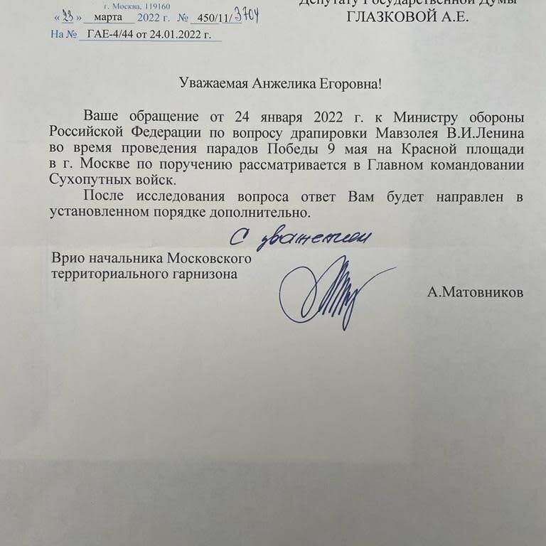 Народный депутат Глазкова продолжает бороться против драпировки Мавзолея Ленина во время Парада Победы.