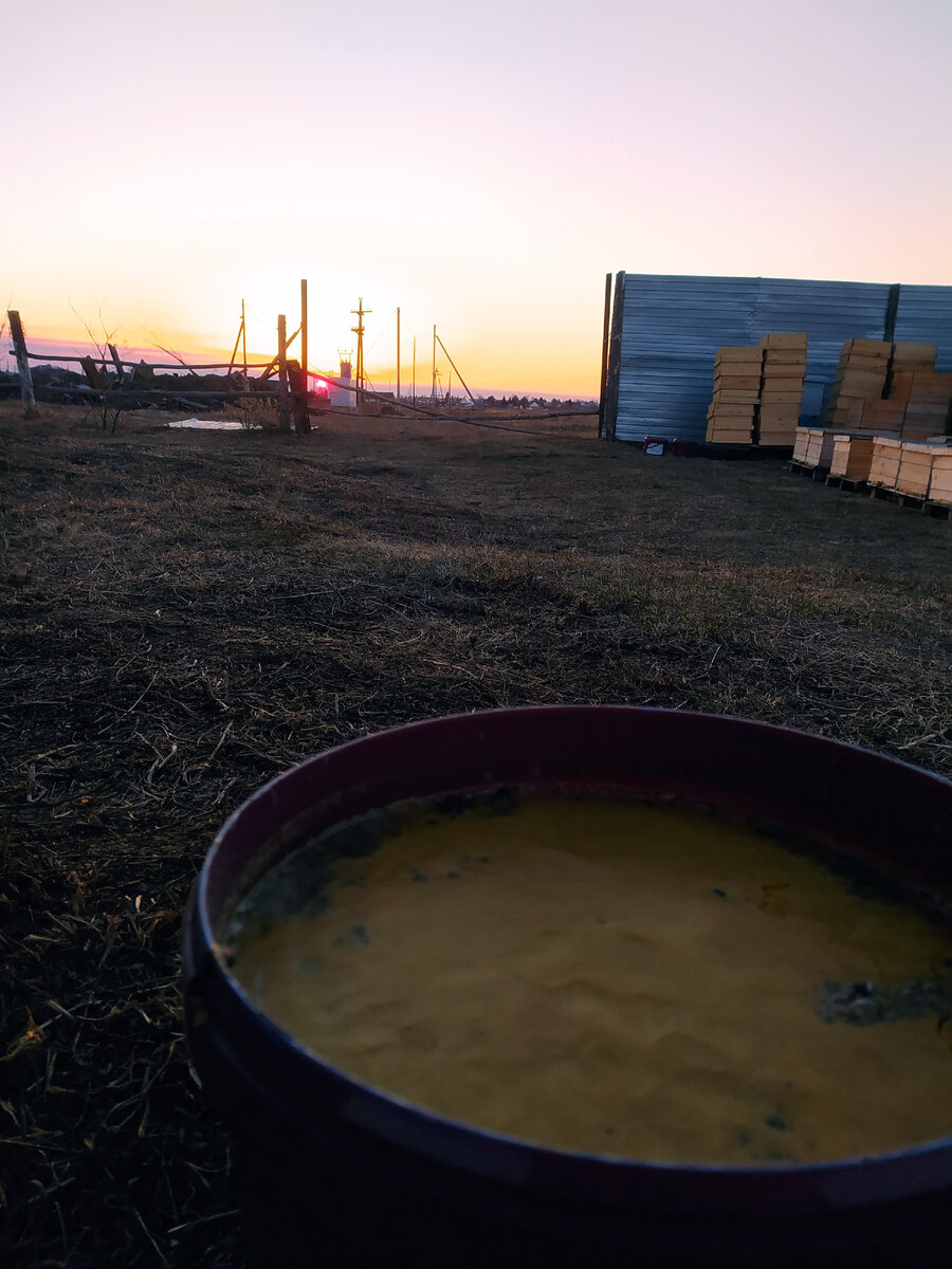 Весенние работы на пасеке включают в себя не только подкорку и уход за семьями. Так же надо очистить рамки погибших семей от воска и обработать их. Иначе они распространяют болезни и на них растет плесень. У нас вытопка организованна простершим образом. Бак с нержавейки, сверху вешаются рамки снизу сетка и кран, сверху закрыто крышкой. Пар обрабатывает рамки и воск стекает на дно. Мерва(отходы от рамок) погибшие пчелы, куколки остаются на сетке. Готовый воск сливается через кран в ведра. И процесс повторяется по кругу. Продвинутые пчеловоды используют паровые воскотопки с вращающимися касетами и обрабатывают рамки перегретым паром. Такой способ позволяет извлечь больше сырья. Мы пока не дошли до этого. Но думаю в следующем году сможем увеличить производство воска. #вытопкавоска #перетопкавоска #весна #пчеловодство
