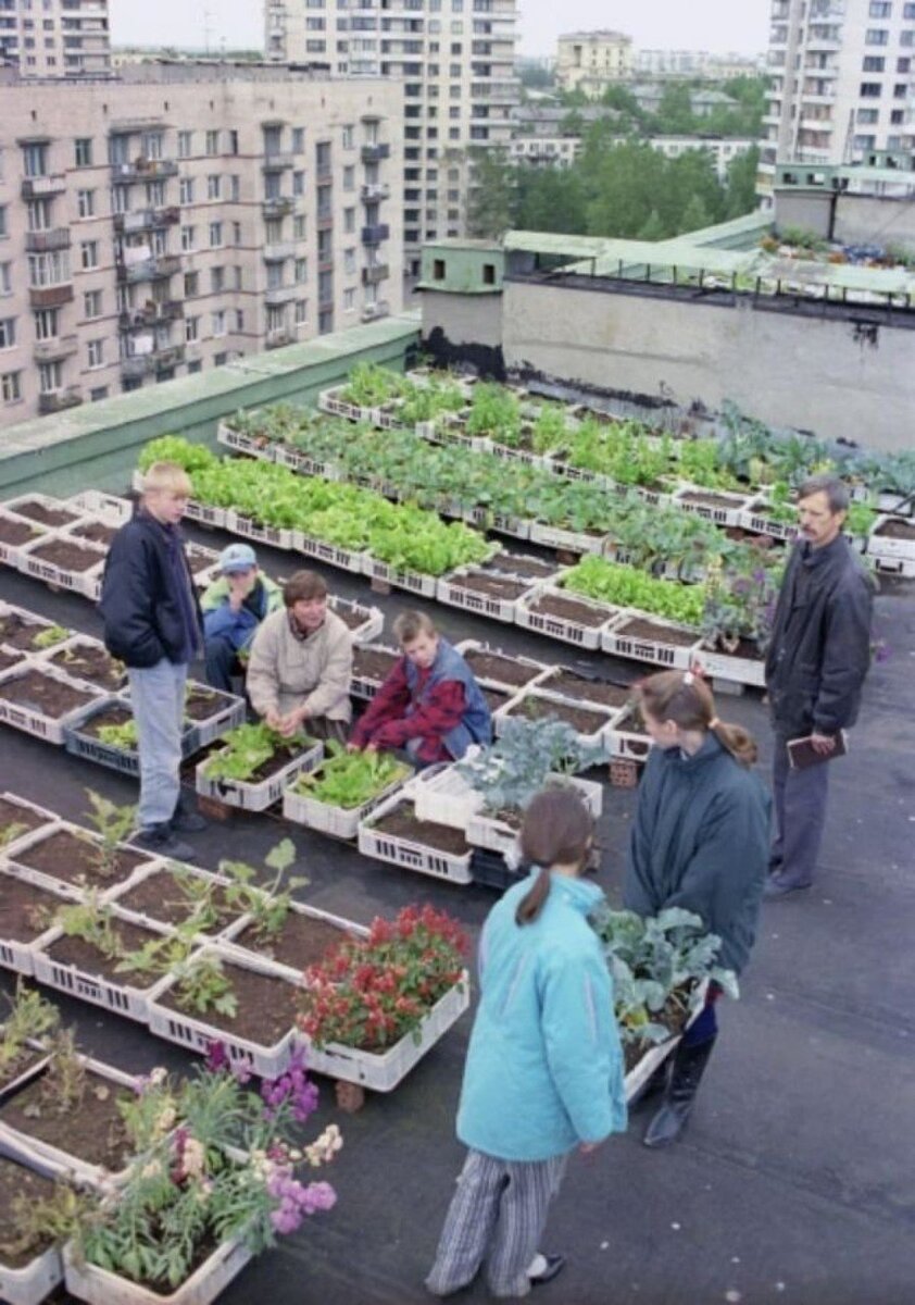 Прекрасная фотография, показывающая возможность как можно использовать территорию крыши. Санкт-Петербург, 1997 год.