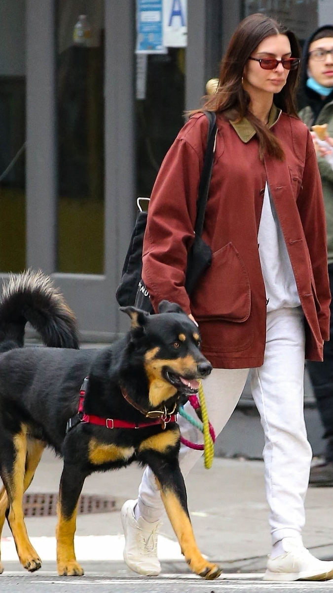 Фотографы вновь встретили Эмили на прогулке с собакой. Для расслабленного утра в Нью-Йорке модель собрала удобный и стильный образ с хлопковым костюмом, кроссовками и курткой темно-терракотового оттенка с контрастным воротником. Аутфит завершили солнцезащитные очки и черный шопер. Читайте также на нашем сайте: Не для всех: 5 модных сочетаний, которые могут позволить себе только женщины с хорошим вкусом #эмили ратаковски #стиль #мода #мода и стиль #гардероб #знаменитости
