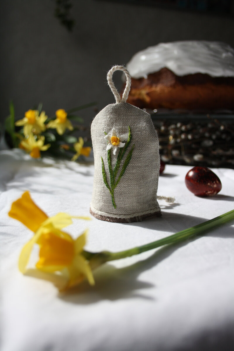 Бразильская техника отличается тем, что мы можем создать натуралистичные и объемные цветы. В дальнейшем эти мотивы возможно использовать в утилитарных целях. Спойлер: в конце публикации еще несколько сюжетов вышивки. Несколько дней я ломала голову как вышить нарцисс. Хотелось минималистичную моно вышивку. Я изучала ботанические рисунки и живой цветок. В голове наметился план действий и я решила сразу снимать процесс. В сети можно легко найти вышивку роз, сирени и других цветов. Нарциссы не очень популярны. Как-то я снимала подробное видео вышивки фиалок, так как тоже не нашла их. Я использовала лен натурального цвета (с изнанки проклеила флизелином) и нитки мулине Madeira . Я всегда вышиваю этими нитками, так как это удобно в работе и дальнейшем хранении, всегда можно отрезать необходимую длину и не надо перематывать дополнительно на бобины. Набросок рисунка делаю смывающимся маркером. Фото делала максимально поэтапные. Если будут вопросы-пишите. ГОТОВО!