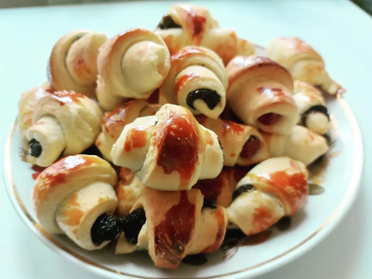 #готую Готувала для племінниць Ингредиенты: борошна, яйці, цукру, вершкового масла, сухих дріжджів або 15 гр живих, молока, Начинка, За бажанням (у мене мак, цукерки еклер, варення з кабачків) Способ приготовления: В просіяне борошно натераєм масло. Борошно та масло перетинає руками у дрібну крошку. У тарілку розбиваєм яйця, додаєм 2 ст. цукру, легенько перемішувати. В тепле молоко + цукор + дріжджі. Перемішати та відставити на 10 хв. В суміші з борошна зробити виїмку, додати туди яйця та дріжджі. Перемішати спочатку виделкою, а потім руками вимісити тісто. Тісто має бути м'яке, еластичне та зовсім не липнути до рук. Як тісто підійшло розділити його на 4 частини. Кожну частинку розкатати в круг та нарізати трикутниками. Додати начинку та сформулювати рогалик. Змастити жовтком та присипати цукром. Випікати при температурі 180 градусів 20 хв. Смачного.