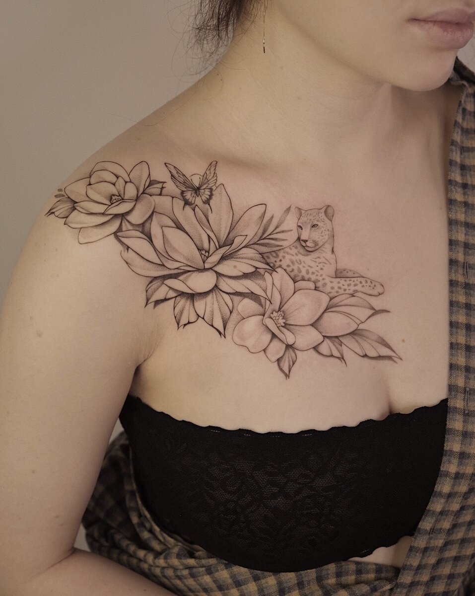 Каждый мастер работает в своём комфортном темпе, кто-то за сеанс может сделать целое плечо, кто-то может просидеть над миниатюрой несколько часов. Во многом это зависит от детальности работы, техники и игл, которыми работает мастер. Я использую самые тонкие (3rl и 1rl - это значит, что в картридже находится 3 иголочки или всего одна). Это позволяет сделать очень тонкие линии и проработать мельчайшие детали, для того чтобы закрасить большие участки кожи чёрным они не подходят (теоретически это можно сделать, но понадобится очень-очень много времени) Эта работа сделана в 2 сеанса (хотя она относительно небольшого размера) - примерно 6 часов с перерывами в первый день (+ чуть больше часа на согласование размера и расположения, подготовка и перевод трансфера на кожу) и 3 с небольшим часа во второй) Вы спросите, зачем было разбивать на 2 дня, если можно было посидеть подольше и сделать все за раз. Да, раньше я так делала, но больше не буду) Я не машина и работать не упахиваясь могу