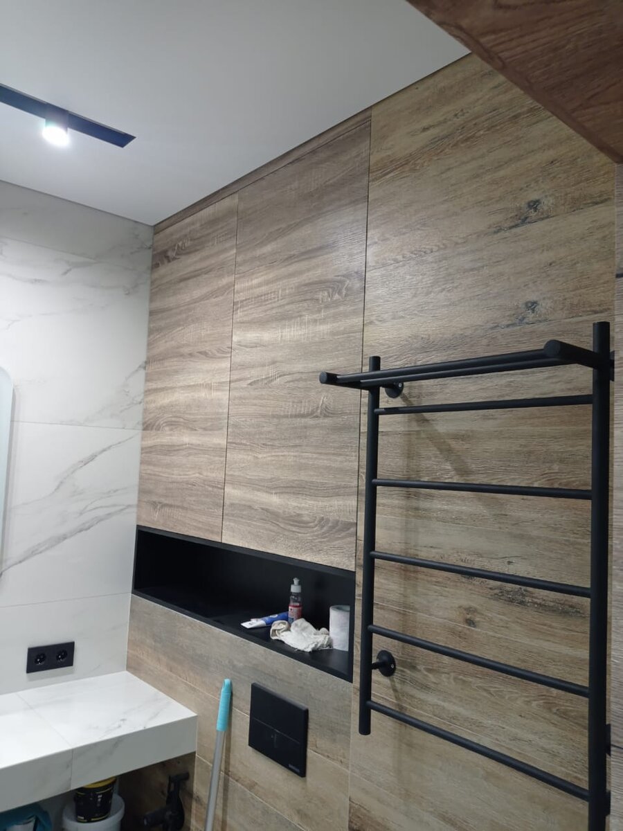 Тот самый случай как нужно максимально использовать пространство вашего сан узла.. Пространство над инсталяцией используется как ниша с полками при этом с наружи почти идеально вписывается в общий интерьер сан/ узла... Есть полный доступ к коммуникациям разведки труб в квартире... #мебельдома #секретыремонта #санузел #ремонтвквартире #санузелнск