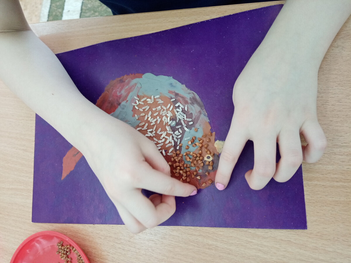 Пластилинография "Воробей" (с использованием природных материалов) Воробьи считаются наиболее распространенными птицами, они очень консервативны-зимуют там, где жили все время, не меняя своего места жительства, строят гнезда, располагая их под крышами домов. Дети любят наблюдать за воробьями, за их чириканьем, перелётом, смотреть, как они купаются в луже. Наблюдать, когда они поедают крошки. С интересом слушают про них стихи, сказки, смотрят мультфильмы. Одно из наших занятий было посвящено именно этому пернатому другу. В ходе работы были использованы природные материалы, собранные детьми в течение лета и осени. Всевозможные природные материалы- это источник замечательного материала для применения на занятиях по художественно-эстетическому развитию в детских садах. Для начала берём раскраску с изображением воробья (лист А4 – покрупнее). Затем берём пластилин серого цвета и размазываем его по рисунку-раскрашиваем его. Далее, из коричневого пластилина небольшие кусочки распределяем по н