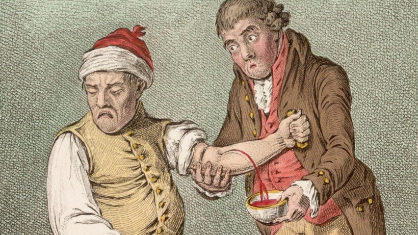 Практика кровопускания извлечения части крови у пациента, чтобы вылечить или предотвратить болезнь, — в значительной степени была неэффективна или вредна. Однако это был один из самых распространенных лечебных методов, выполняемых врачами более 2000 лет. Например, на древнеегипетской могиле (ок. 1500 г. до н. э.) изображены пиявки, приложенные для кровопускания. Кроме того, кровопускание имело чрезвычайно широкий географический охват и осуществлялось древними месопотамцами, египтянами, греками, представителями народа майя и ацтеками и жителями Индийского