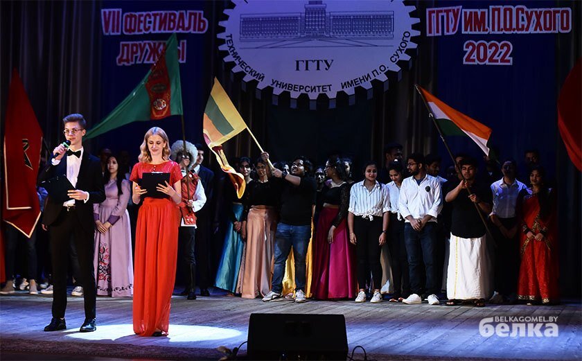 Каждую весну в технический университет имени П.Сухого приезжают иностранные студенты, чтобы выйти на сцену и показать, как многообразна их культура. Открытый фестиваль дружбы проходит в гомельском вузе уже семь лет. И всегда с аншлагом. География участников впечатляет – Конго, Нигерия, Китай, Узбекистан, Туркменистан, Индия… Студенты из десяти стран, получающие высшее образование в вузах Беларуси, в этот раз читали рэп, играли на тулумбасе, пели хором а капелла и делали массу других вещей, срывая бурные аплодисменты зрительного зала. Таланты студентов жюри оценивало в нескольких номинациях, включая вокал, хореографию и театральное мастерство. Выбирать лучших было сложно, ведь практически каждый номер – это оригинальный материал, с нестандартными подходами и очень красивыми мелодиями. В какой-то момент автор этих строк отложила в сторону блокнот и решила просто насладиться атмосферой. Открыл концертную программу «Многоликий Китай», вокально-танцевальная композиция студенто