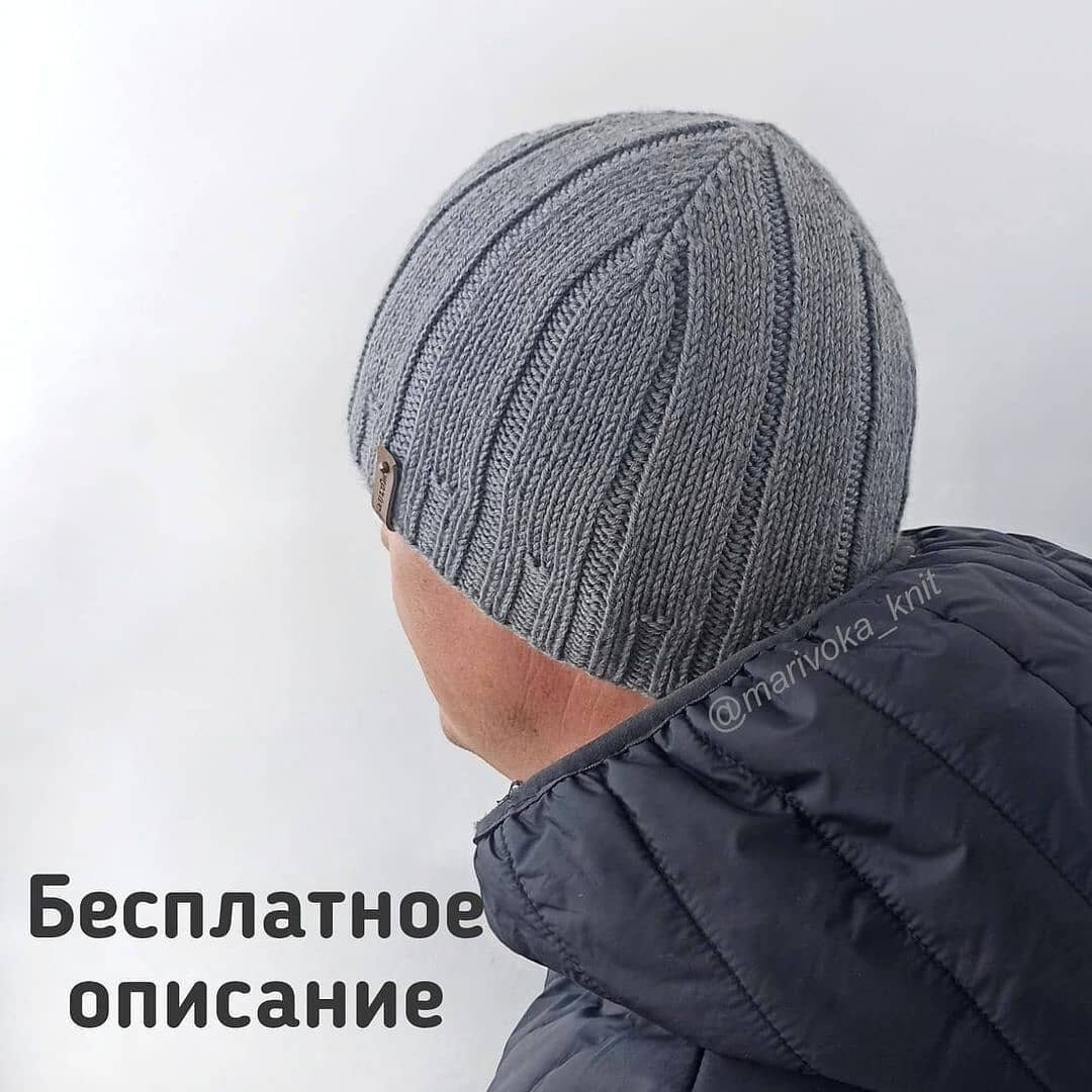 Простая стильная шапка спицами для мужчин. Описание вязания