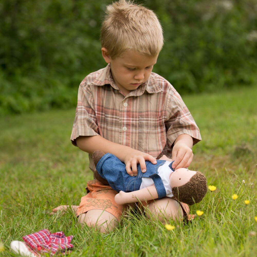 Вы покупаете мальчику машинки и пистолеты, вот он ими и играет, а что ему делать. А вы куклы попробуйте!