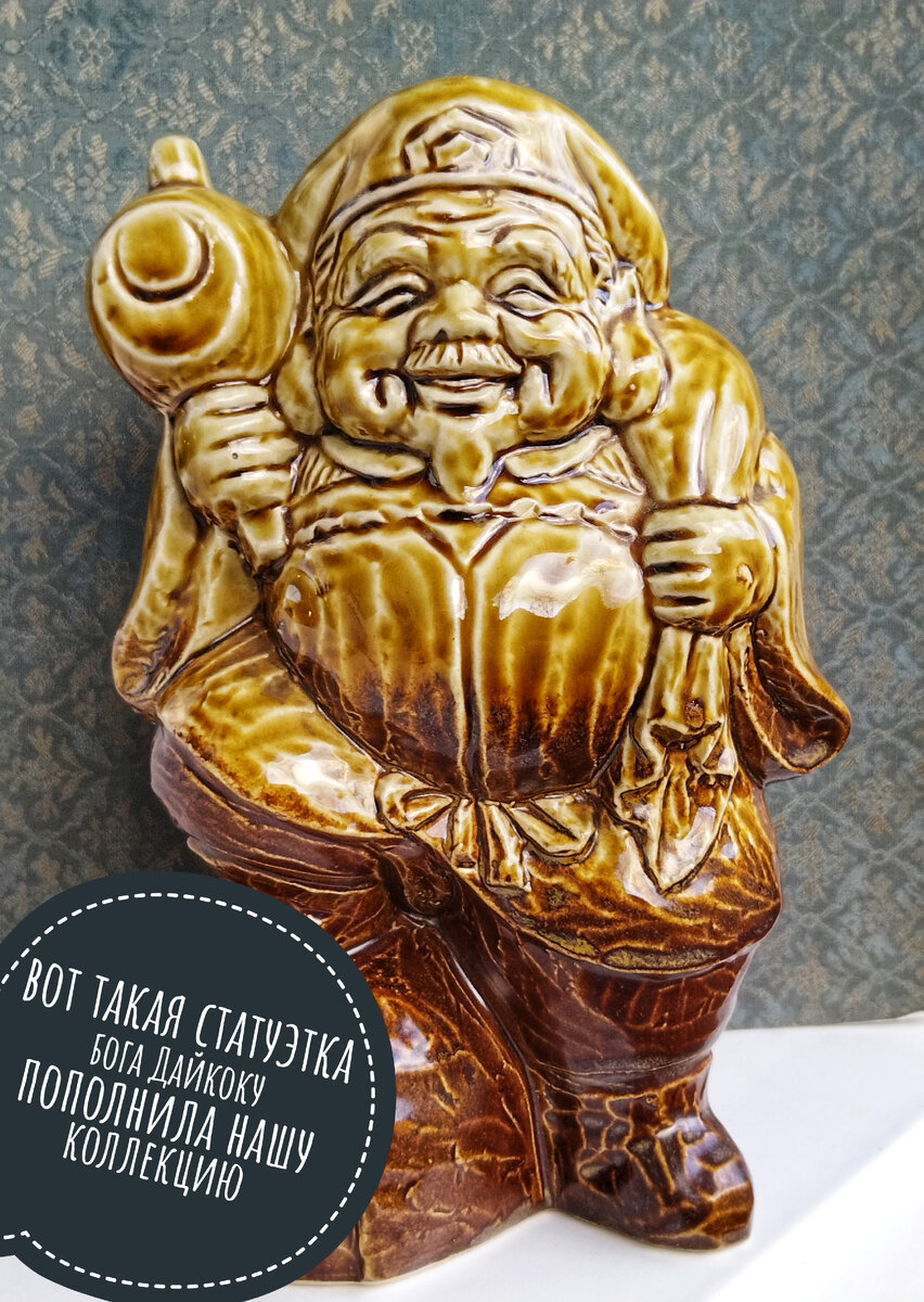 🌸Дорогие друзья! Наша коллекция пополнилась новой статуэткой синтоистского божества Дайкоку. 🗻Дайко́кутэ́н (яп. 大黒天) — один из семи богов удачи, «Великий Чёрный». Первоначально был индийским божеством Махакалой. Из индийского пантеона Махакала перешёл в буддийский, как один из богов-защитников будд от темных сил. В VII веке отправившийся в Индию китайский монах Ицзин упомянул в своих путевых заметках тот факт, что встречал в индийских храмах двурукие статуэтки Махакалы, выступающего покровителем кухни. Данная мода прижилась и в Китае, где Махакала также стал покровителем кухни. В IX веке Китай посетил основатель школы Тэндай, Сайтё, который завёз в Японию статуэтку Махакалы. Так как имя «Махакала» означало «Большой чёрный», в Японии бог стал именоваться Дайкокутэном, что было дословным переводом «Махакала» с санскрита на японский. Благодаря тому, что первые иероглифы имени божества Окунинуси могли быть прочитаны как «Дайкоку», возникла игра слов, которая привела к отождествлению Дай