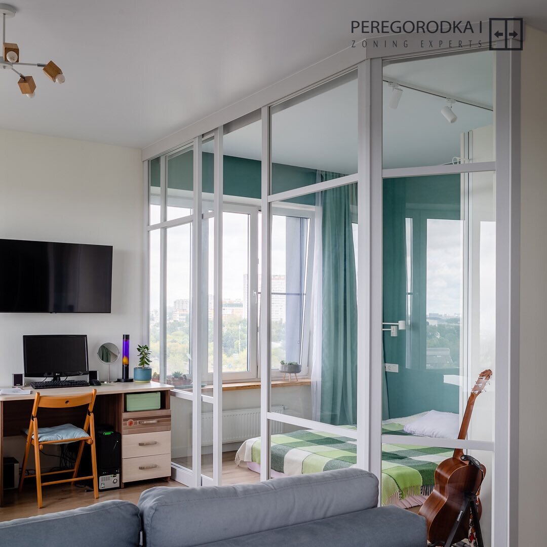 Ищете решение для зонирования небольшой студии? Показываем наш ответ - эркерная перегородка