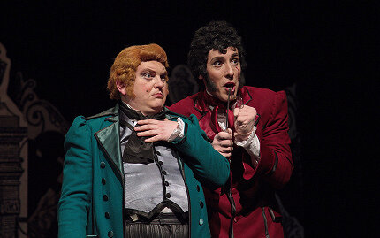 Особый акцент в комедии – на актерскую игру, виртуозную и искрометную: без драйва здесь никак не обойтись, и актеры Театра Сац устраивают на сцене настоящую феерию смеха, тонкого юмора, а подчас и острого сарказма. В полном согласии с буффонным актерствованием находится и музыкальное решение – гибкий и выразительный речитатив, четкость дикции, интонационное разнообразие – всем этим блестяще владеют артисты. Томный и робкий Подколёсин Максима Дорофеева, нагловато-авантюрный Кочкарёв Андрея Панкратова, суматошная Фёкла Анастасии Ялдиной, глуповато-наивная Агафья Анны Малькиной, приземленно-рассудительная Арина Пантелеймоновна Натальи Елисеевой, а также уморительные образы женихов, созданные Владиславом Дорожкиным (Яичница), Олегом Банковским (Анучкин), Максимом Усачёвым (Жевакин), и гротескные – слуг, воплощенные Георгием Сологубом (Степан) и Юлией Волковой (Дуняша), складываются в замечательный ансамбль, дарящий зрителю-слушателю непередаваемые эмоции настоящего русского водевиля.