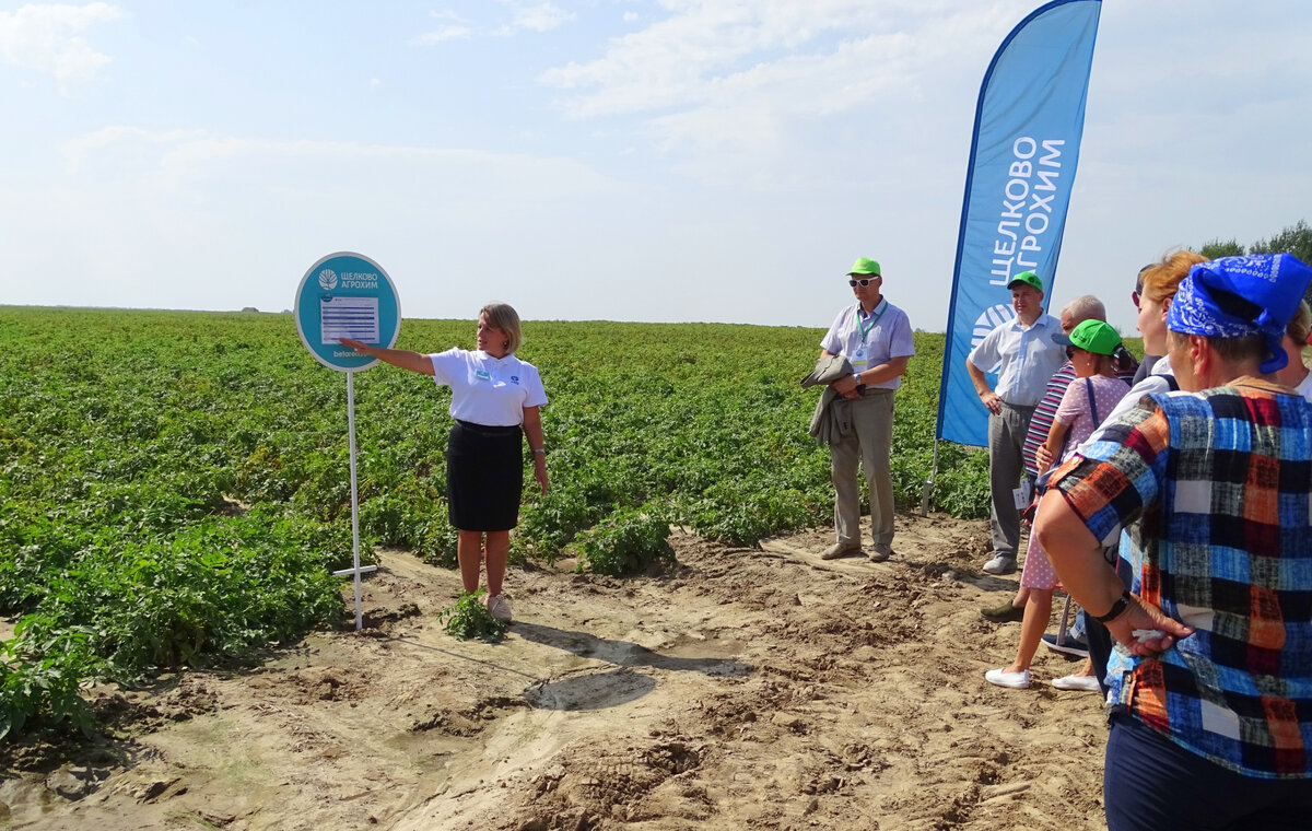 В АО Племенной завод «Илькино» Меленковского района Владимирской области состоялся областной День поля-2021 с демонстрацией семенных посадок картофеля и посевов овощных культур, в котором приняли участие руководители и специалисты сельхозорганизаций, главы КФХ, представители различных агрофирм. Глава Владимирского представительства «Щёлково Агрохим» Оксана Фёдорова познакомила участников мероприятия с демонстрационной делянкой картофеля, которая обрабатывалась «щёлковскими» средствами защиты растений. Для предпосадочной обработки клубней картофеля здесь использовали препараты ДЕПОЗИТ, МЭ – 0,4 л/т + БОМБАРДА, КС – 0,7 л/т, последний из которых является новинкой сезона. Этот уникальный инсектицидный протравитель обладает мощным «нокдаун-эффектом» и продолжительной защитой от личинок и имаго почвообитающих и наземных вредных насекомых. Гербицидную защиту осуществляли с помощью ЗОНТРАН, ККР – 1,4 л/га + КАССИУС, ВРП – 0,05 кг/га. Две фунгицидные обработки состояли из контактно-системного