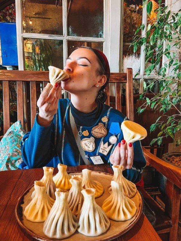 Салами, генацвале! Хинкали – это гордость нашего грузинского дома. Именно с них и началась «Супра». Однажды основатель наших ресторанов Илья Сухих впервые попробовал хинкали и понял, что их сок – как первый поцелуй😘 Тогда он решил построить лучший грузинский ресторан на Дальнем Востоке! За пять лет существования наших ресторанов мы слепили уже 7 миллионов хинкали, и сегодня я хочу рассказать тебе легенду этого блюда😎 Несколько путников путешествовало по всему миру. В каждой стране они делали остановки, чтобы окунуться в атмосферу и быт народа, и, конечно же, попробовать местные вкусности😊 Отправились путешественники в Грузию, попробовали там хинкали. Так сильно понравилось им это блюдо, что они попросили рецепт у местных жителей. Готовилось оно так: брали тесто, тонко раскатывали его и формировали круглешки, клали туда рубленое мясо барана с луком, чесноком, зеленью и грузинскими специями. У нас тоже есть такие хинкали, и имя им - сванские. Самые традиционные из всех традиционных! О