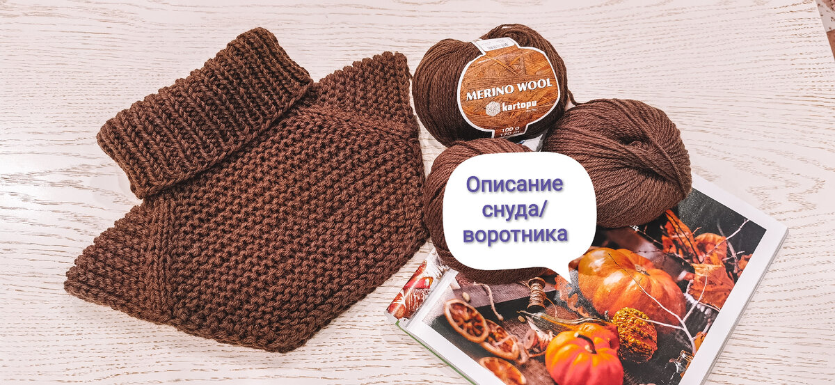 У меня получился отличный снуд/воротник, вязала мужской, но это универсальный, конечно же, вариант, главное, измерить голову и вперёд 🤗 Возьмите любые понравившиеся вам ниточки, свяжите образец, измерьте сколько петелек в 10 см, умножьте на объем головы, получите необходимое количество петель. Описание по моим размерам и расчётам: Обхват головы 60-62 см Высота снуда – 33 см Ширина воротника – 31 см (резинка в рястянутом виде) Ширина по плечам – 41 см Вам потребуется: 1. Пряжа 100 гр 170 м - 2 мотка, вяжем в 2 нити (у меня Картопу Merino Wool 100% шерсть); 2. Спицы № 4 круговые. Плотность вязания резинка 1х1 10 см = 9 п. Вяжем сверху вниз. Набираем 54 п. и вяжем резинкой 1x1 по кругу 16 см (32 ряда). Далее вязание продолжаем платочной вязкой (если вязать по-кругу, то чередуем ряд лиц, ряд изн, когда перейдем на поворотные ряды, то всегда вяжем лиц петлями). Делим вязание на 6 частей 54:6=9 петель. По 9 п на плечах, по 18 пе на перед и спинку = 54 п. 1