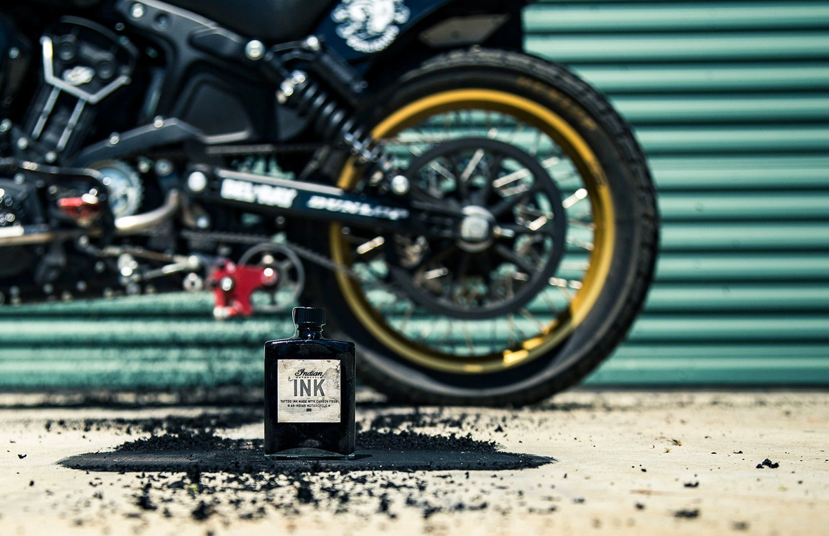 Мы уже встречались с примером того, что красящий тату-пигмент может быть изготовлен на основе переработанных виниловых рок-пластинок. Судя по всему, входит в моду применять в производстве тату-красок какое-то вторсырье черного цвета. Вот и легендарная мото-мастерская Indian, которая была основана аж в 1897 году, решила создать свой собственный тату-пигмент, который изготавливается на основе сожженных мотоциклетных шин. Главным составным элементом черного красящего тату-пигмента является технический углерод, иными словами – это обычная сажа или, жженка, если говорить словами людей тогдашнего времени. Любой черный цвет, который мы видим в нашей повседневной жизни – это технический углерод, он является главным веществом в производстве любых черных красителей. В качестве усиливающего элемента его часто добавляют в резиновые изделия. Вот почему автомобильные и мотоциклетные шины приобретают именно черный цвет. Так что использование старых покрышек в производстве тату-красок, с теоретической