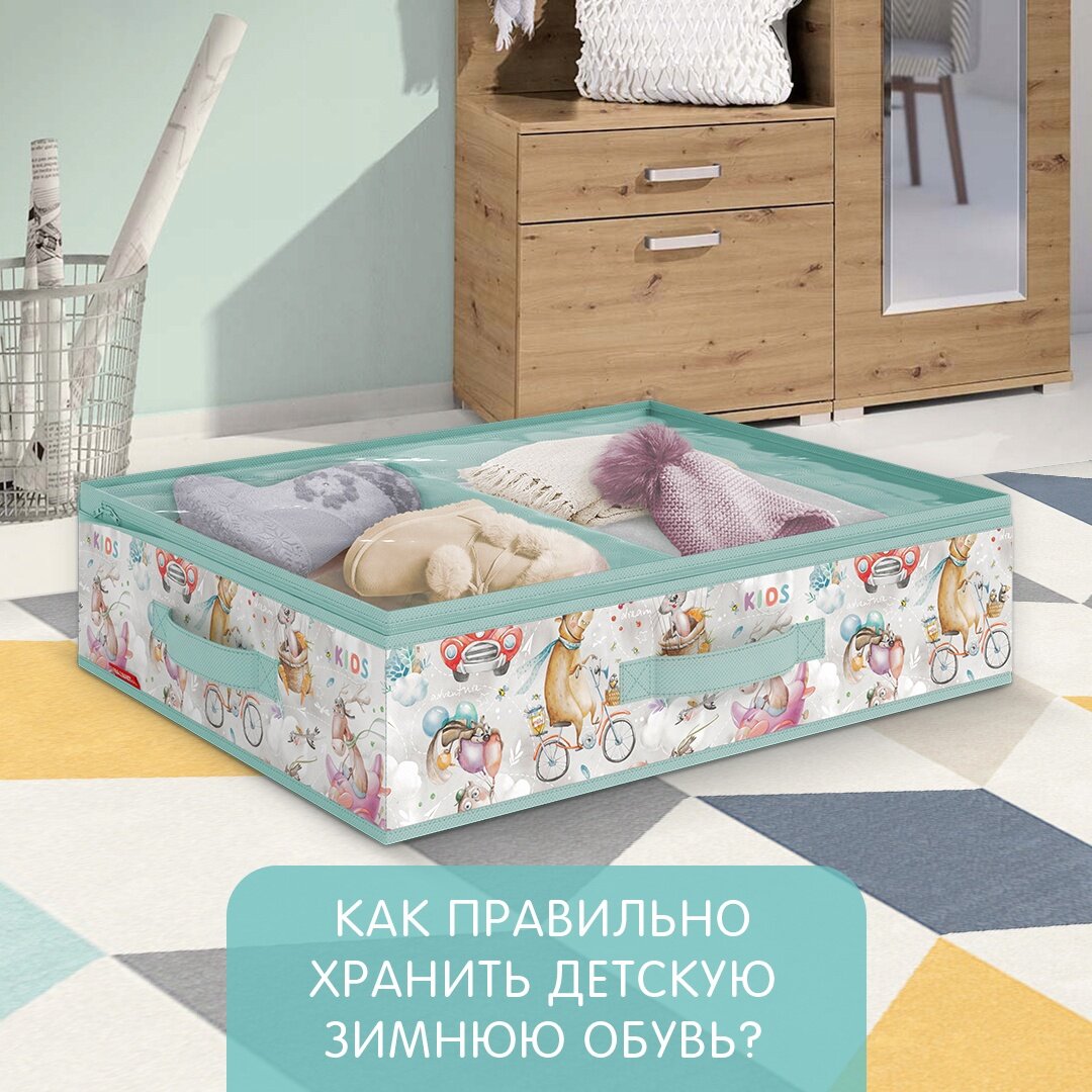 - Выберите пространство для хранения сезонной детской обуви. Будет здорово, если коробочки или кофры для обуви будут отличаться и выделяться среди всех остальных. Например, поместите детскую обувь в специальный кофр для хранения обуви VALIANT KIDS! Прозрачная вставка поможет легко находить обувь, жесткие стенки кофра защитят обувь от деформации, а нетканый материал будет пропускать воздух, при этом, защищая материал от пыли!