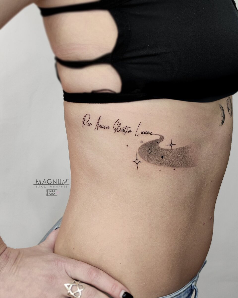 Любимейшее среди народа направление тату – надписи. Они и ассоциируются у рядовых граждан с самим понятием татуировки. От уголовных наколок до кропотливейше исполненных в технике 3D изречений какого-нибудь мертвого философа, или сакральной формулы на санскрите – все это тату надписи. Что хотят люди, заказывая мастеру именно тату с надписью? Прежде всего, выразить миру что-то для себя важное, можно сказать, неотделимое от их сути. Религиозные убеждения, или же памятную дату, а может и жизненный принцип. Статистика подсказывает – почти половина первых в жизни тату это надписи. И все-таки, возжелав набить крутую фразочку на бицепсе, нелишне будет задуматься вот о чем: А еще надписи можно легко и органично вписывать в рисунки, создавая собственные маленькие шедевры.