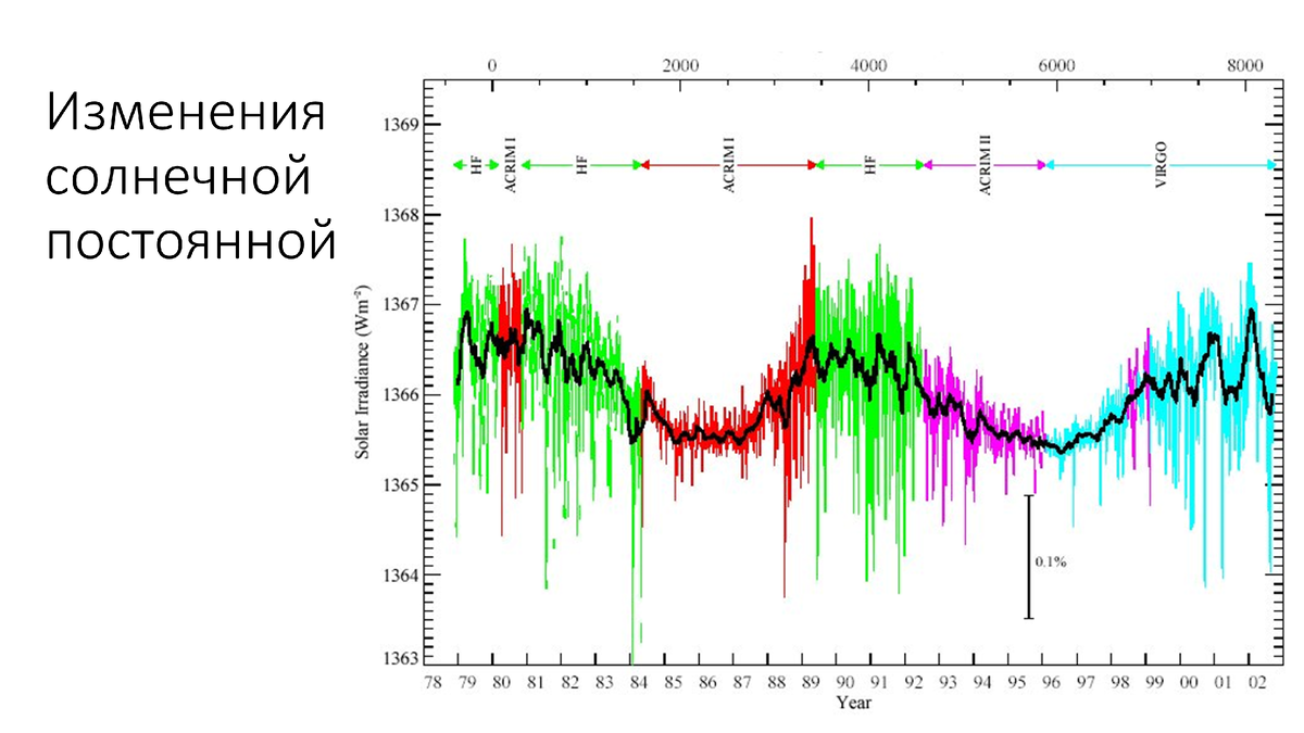 Изменение солнечной постоянной, можно сказать, светимости Солнца — это физическая переменность. Из-за чрезвычайной малости этого изменения обнаружить ее удалось лишь во второй половине XX века и только при наблюдении из космоса.