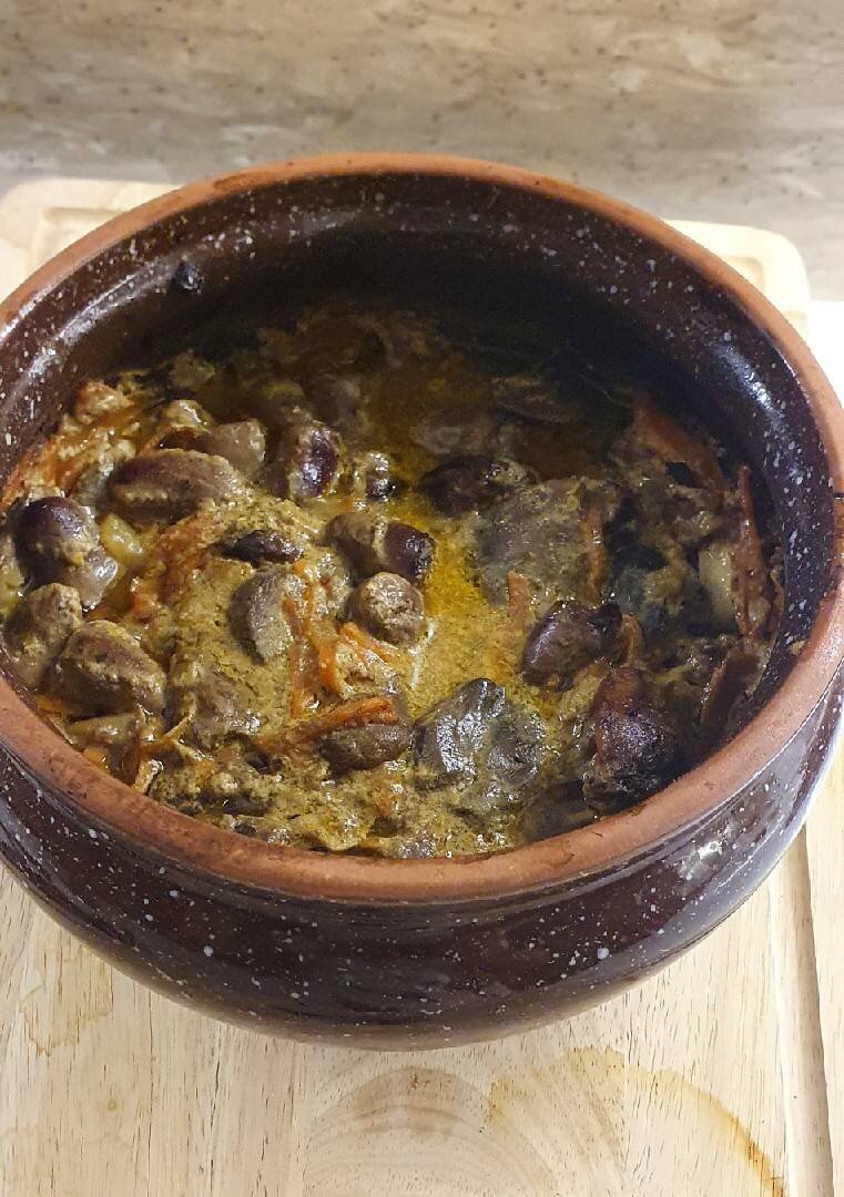 Ингредиенты: куриных сердечек, сметаны, замороженных лесных грибов, луковицы, крупная морковь, чеснока, соль , специи усяньмянь (эх, не было хмели-сунели!)