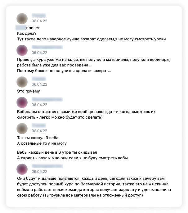 Мы сталкиваемся с большим количеством пользователей, которых не только обманули красивой «упаковкой» онлайн-курсов, но еще и запугивают при их попытке вернуть деньги. Вернуть деньги за курс можно, а в этом гайде мы показали, что это не так уж сложно, и подробно описали, что именно нужно делать.