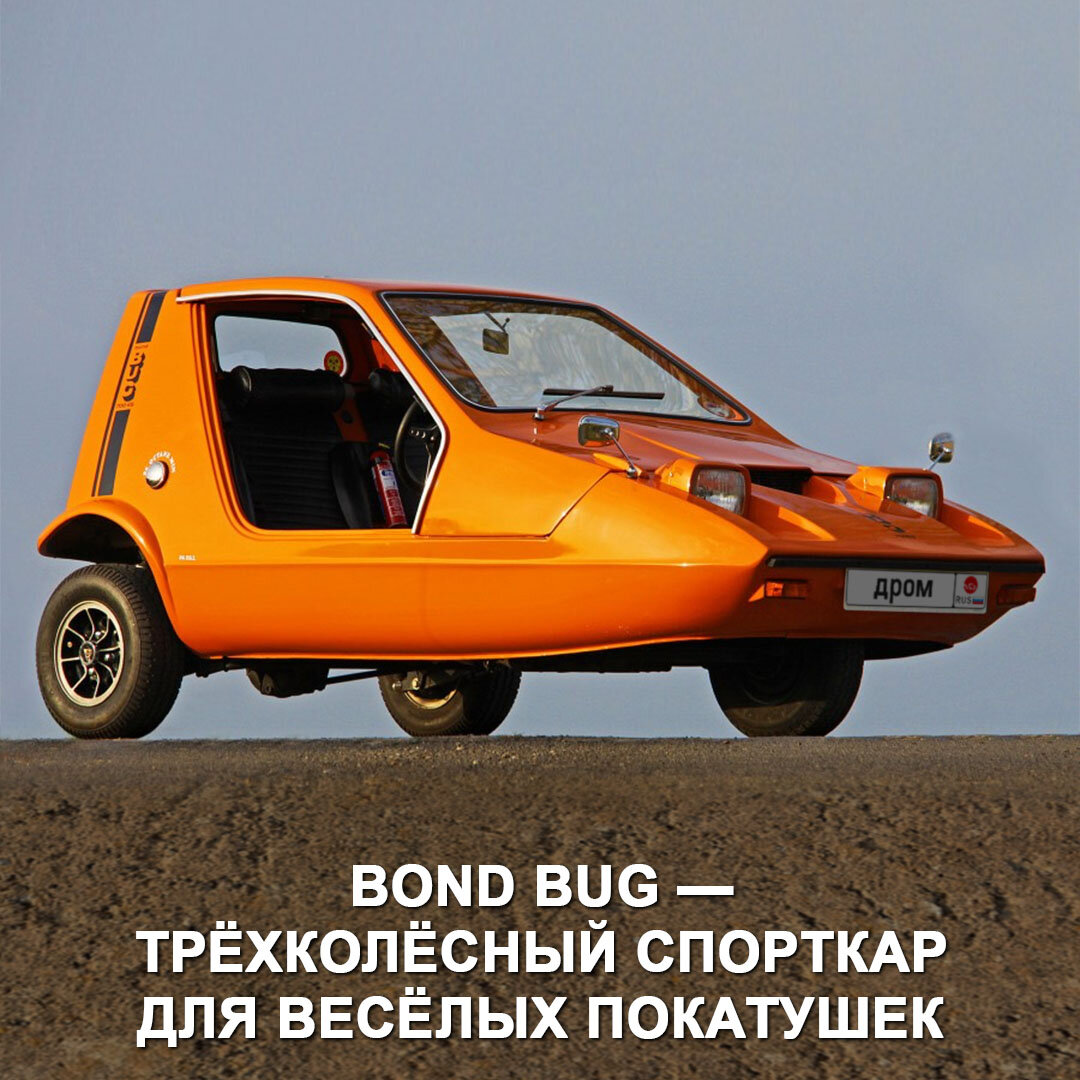 В Англии 50-х годов трехколесные автомобили были выбором небогатых слоев населения. Но уже к концу 60-х ситуация изменилась. Такие автомобили начали покупать ради веселья. Благодаря такому спросу и появился Bond Bug — трехколесный спорткар. Его особенностью стала верхнеподвесная дверь, совмещающая крышу и лобовое стекло. Эпатажности придавала и единственная оранжевая окраска. Автомобиль разгонялся до 126 км/ч, благодаря 32 л.с. в рядном 0,7-литровом моторе. При этом цена машины была на 9 фунтов дороже самого дешевого четырехколесного Mini. В итоге именно ценник стал причиной неконкурентоспособности и общий тираж составил всего 2270 единиц. #дромтачкадня #bond #bug #автомобиль #машина #трехколесный