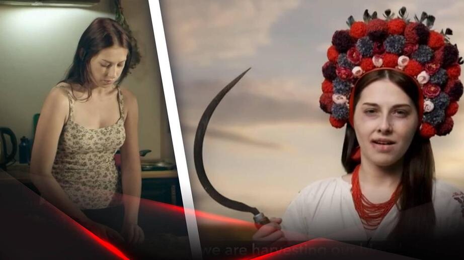 «Убивали до тех пор, пока у миролюбивой и хлеборобной нации не проснулось что-то страшное. Что-то, что веками дремало в недрах днепровских обрывов. Первозданный и античный украинский бог. И теперь мы собираем кровавую жатву. Вас всех ждет смерть», — заявила актриса в кадре и серпом перерезала горло мужчине в тельняшке. Ролик заканчивается словами актрисы «Добро пожаловать в ад».