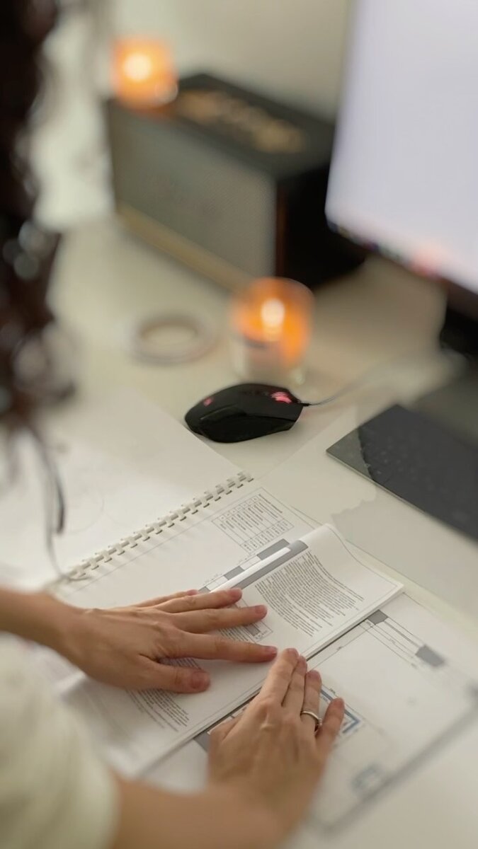 Если при печати возникала ошибка, я ехала домой, переделывала и отправляла еще раз на печать. Нередко цветопередача визуализации выходила с сюрпризом 😬😬 Часто поджимали сроки и я нервничала. Заправка принтера - это вовсе не про экономию средств. Картриджей хватает на два альбома. А это почти такая же стоимость, как печать в типографии. Но в отличие от удаленной печати, сейчас я делаю все расслабленно, спокойно и, при возникшей ошибке, могу сразу все поправить. Мой формат не поменялся с начала работы. Я до сих пор нахожу его удобным. Печать визуализации или коллажей делаю на А4.