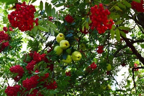 Планируя посадку яблони на компактном садовом участке нужно учесть, что не со всеми «соседями» деревцу будет комфортно и порой «конфликтов» не избежать. Некоторые растения выделяют в почву опасные вещества, либо корни разрастаются так, что не оставляют шансов другим нормально расти. И конечно – наличие общих вредителей и болезней. Рябина Соседство с рябиной грозит «букетом болезней и вредителями. Рябиновая моль подъедает плоды рябины, а на яблоне может делать кладки. Появившиеся гусеницы с удовольствием отведают яблок. И тогда весь урожай будет червивым. Калина Тут двойная угроза. Во-первых, калина является привлекательной для тли. И достаточно быстро этот вредитель оккупирует и яблоню. Во-вторых, калина много пьет и забирает всю влагу себе. Тут либо усердно калину поливать, либо с яблоней рядом вообще не сажать. Вишня, черешня, персик В категорию «нежелательное соседство» вошли косточковые деревья. Вишня и персик растут быстрее яблони. И значит активнее потребляют из почвы питательных