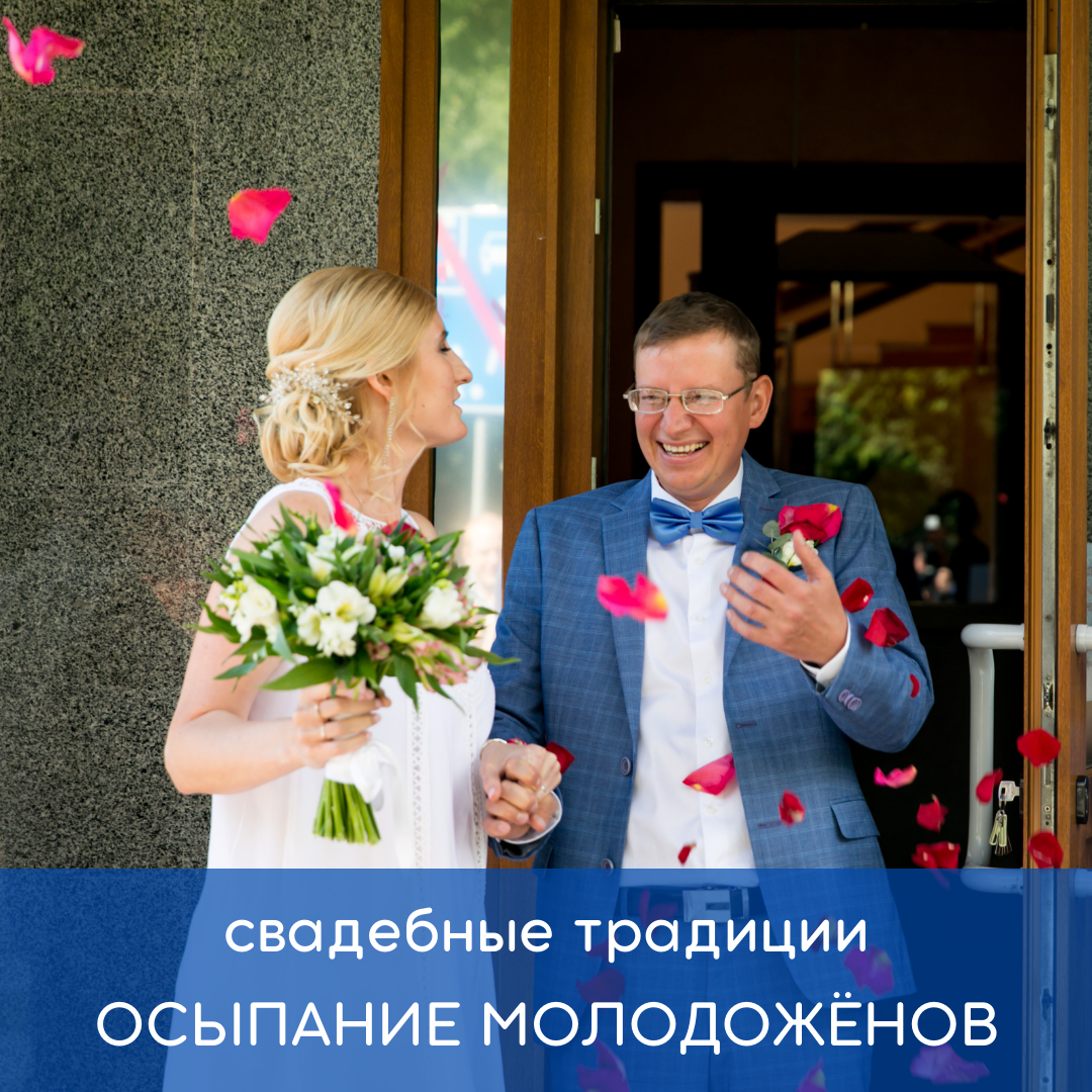 Это древняя славянская традиция посыпать молодожёнов, символизирующая пожелание им счастья, долгих лет жизни в браке и плодовитости.