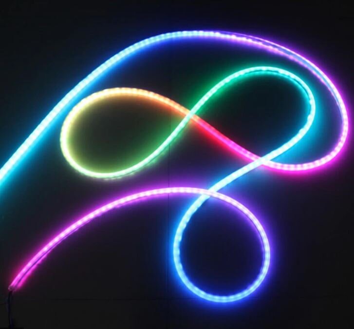 На каждом метре адресного неона установлено 20 управляющих чипов WS2811 (по 1 штуке на 3 диода), что позволяет создавать анимации в стиле "бегущий огонь", "эквалайзер" и многие другие.