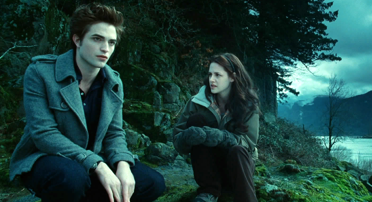 Белла видит Эдварда в школьной столовой и тут же влюбляется – такое вполне может произойти в реальности. Далее ее влюбленность растет (в книге настолько много описаний медовых глаз Эдика, что кажется, у Беллы память как у рыбы), но не подкрепляется со стороны Эдварда. Кровосися не далет ничего, что могло бы заставить Беллу полюбить его.