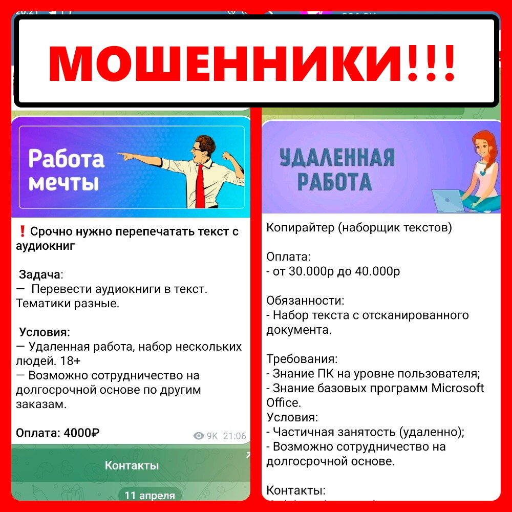 Срочно требуется наборщик текстов! Оплата - 500 рублей за одну страницу. 2 часа в день - 50-100 тысяч в месяц! Опыт и навыки не требуются! Торопитесь, набор ограничен! Видели подобные объявления? Хотелось взяться за такую халявную работу?.. Надеюсь, что нет. Ибо заработать в здесь сможет только "работодатель". Обычная схема "заработка" подобных "щедрых работодателей": Почему QIWI и какое отношение он может иметь к интернет-ресурсу для фрилансеров?.. Вопрос риторический. В общем, помните, что халявный сыр ещё не сделал счастливой ни одну мышь! Нет таких расценок за низкоквалифицированный труд типа набора текстов, исправления опечаток, удаления спам-комментариев в соцсетях и т.п. Просто нет, смиритесь с этим. И как только вам предложили расстаться с вашими деньгами - под любым предлогом! - бегите прочь. Здесь заработать не светит. Есть и другие, менее очевидные, варианты отъёма денег у населения интернет-цыганами. Но статья получается длинная, поэтому - продолжение следует #мошенничеств
