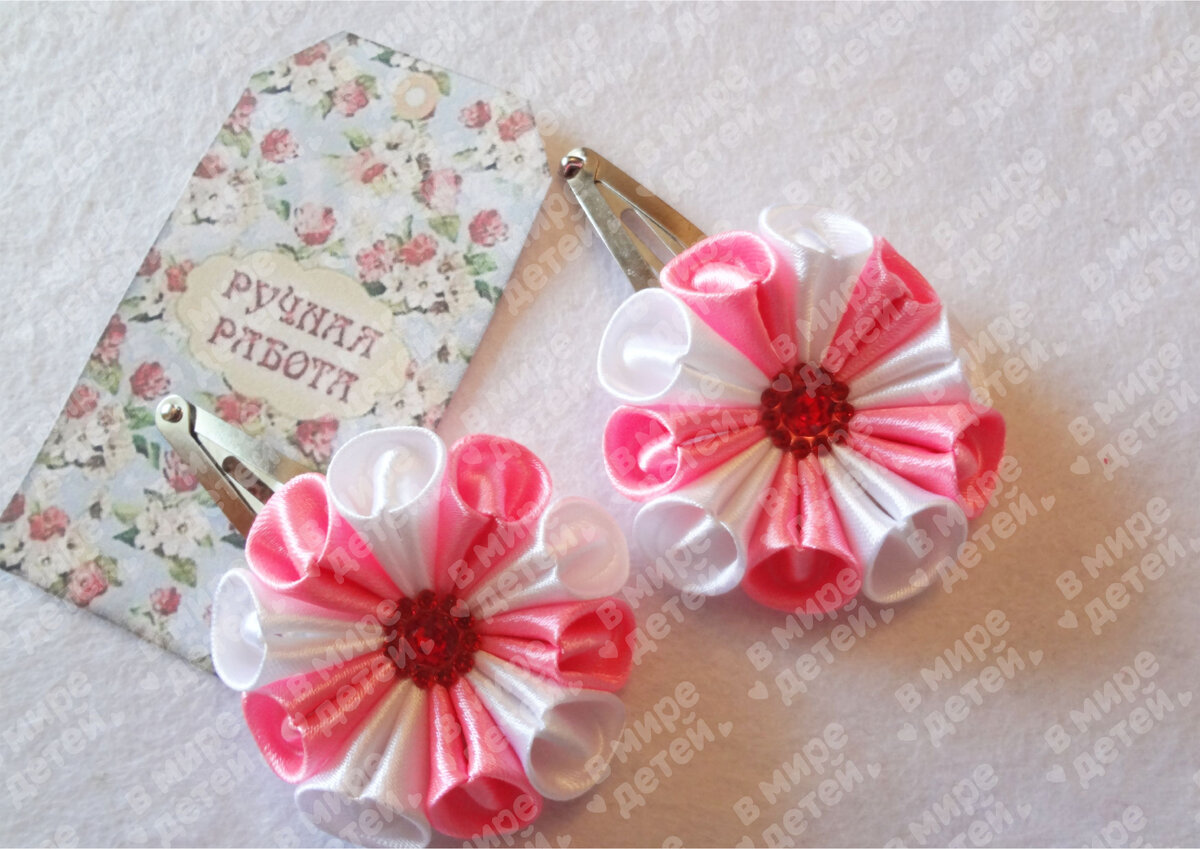 Мастер класс для детей - нежные бело-розовые заколочки из атласной ленты