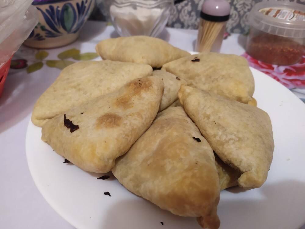 Самса с картофелем и фаршем готова. Даем ей немного остыть, выкладываем на тарелку и подаем к столу Приятного аппетита🌺