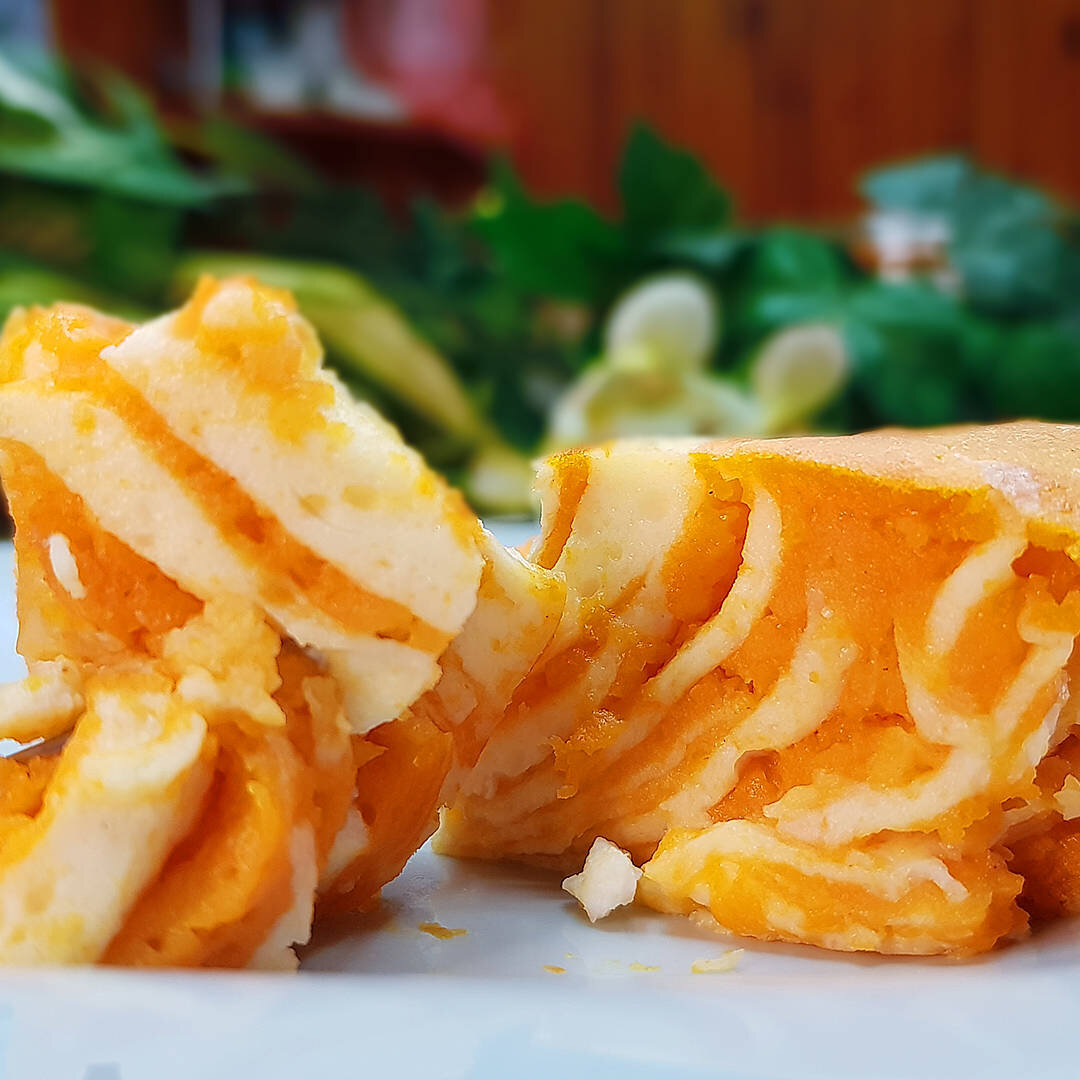 Ингредиенты: тыквенное пюре (вес очищенной свежей тыквы около 700), Сахар , яйца, Просеянная мука , Цедра одного лимона или апельсина, Творог жирность 9% (жирность по вкусу), Ванильный сахар, Сметана 20% жирности (жирность по вкусу), Молоко количество по необходимости (жирность по вкусу), Мягкое сливочное масло для того чтобы смазать форму, Мука чтобы притрусить форму