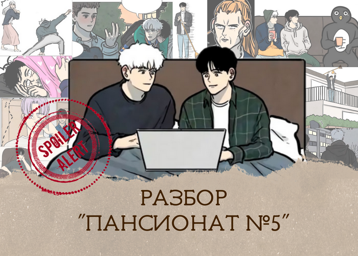 Привет, дорогой друг, мы уже познакомили тебя с описанием манхвы "Пансионат №5". P.S.: Кто пропустил вот ссылка⬇️ Сегодня в планах рассказать тебе об особенностях манхвы и рассказать о персонажах. Готов? Тогда погнали! 🐤 Boarding House Number 5/Пансионат №5 (2017) Сюжет: Манхва рассказывает о жизни 5 парней разного возраста, которые живут в одном пансионате. Сюжет движется от одного персонажа к другому, прекрасно показывая, что мир тесен, т.к разные, не связанные между собой герои всё равно оказываются объединены общими знакомыми или увлечениями. Помимо взаимоотношений между главными героями, хорошо показано их поведение в личном кругу знакомых, что очень здорово раскрывает разностороннюю личность персонажей. Какой-то сильной глобализации проблем в манхве нет, наоборот показаны с разной стороны будничные проблемы. Романтическая линия здесь идет на уровне повседневных забот и не выходит сильно на первый план. Она не мешает героям, не напрягает их. Понравилось то, что в истории пок