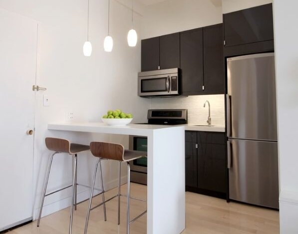 Средний размер кухни Если у вас крошечная кухня или небольшая квартира-студия, вы должны максимально использовать каждый сантиметр пространства. Площадь кухни среднего размера составляет 12-20 квадратных метров. Основной критерий – это количество проживающих человек. В среднем на одного необходимо 3-4 кв.м. Слишком большая площадь не всегда является преимуществом, в отличии от гостиной например. Планировки маленькой кухни Существуют две основных планировки – закрытая и открытая. У каждой из них есть свои плюсы и минусы. Открытая планировка Кухня не имеет стен и барьеров. Ее пространство не отделено от смежных областей, таких как гостиная или столовая. Кухня всегда на виду, поэтому если у вас есть грязная посуда, то гости будут видеть ее. Плюсы: Минусы: Закрытая планировка Плюсы: Минусы: Идеи дизайна маленькой кухни Компактная кухня. Стильный дизайн со столом на одной широкой ножке. Если сделать такой стол складным, то можно сэкономить еще 1-2 кв.м. Кухня скрытая в шкафу. При закрытых д