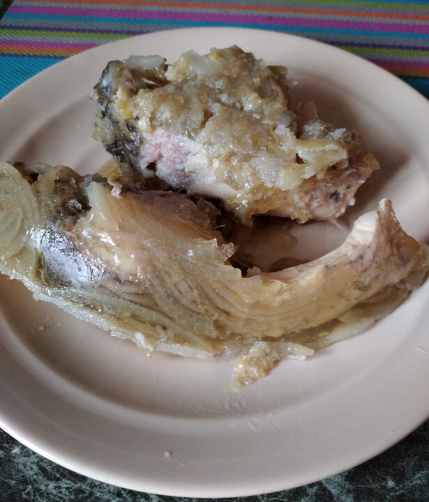 Вот такую рыбу любит вся наша семья.Это карп, сваренный с луком. Укладываем в глубокий сотейник слой лука (лука не жалейте), потом слой рыбы и опять слой лука. Заливаем водой, чтобы покрыла всё, и варим 2 часа. По мере выпаривания воды добавляем понемногу. Солим по вкусу. Обязательно остудить, а потом в холодильник. Есть нужно холодной - рыба нежная, желе, которое получается в результате длительной варки - сладкое от лука и очень вкусное. Такую рыбу готовим уже более 40 лет. А это снегирь сегодня у нас на окне в кормушке! + 2 фото Больше общения и рецептов - в группе "Рецепты для диабетиков" в ВКонтакте! Рецепт на странице Автор рецепта – Алла Галочкина