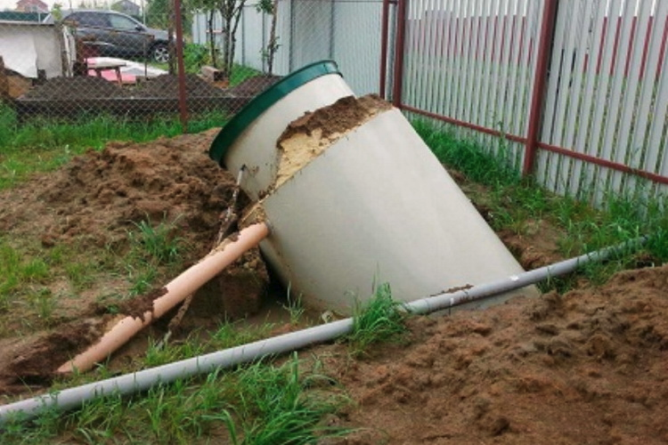 5. Если вы вдруг случайно вспомните, что при консервации полностью откачали воду из септика, то вас может ждать такой же сюрприз, как на картинке. Под давлением грунта пустой резервуар может деформироваться или всплыть на поверхность, ломая трубопроводы и поднимая грунт. Восстановление работы септика потребует сил, времени и средств. А если окажется, что корпус ремонту не подлежит, придется покупать новое очистное сооружение.