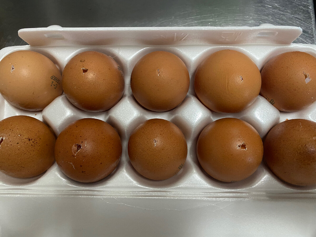 Итак, способ заключается вот в чем. В каждом яйце остриём ножа мы делаем мелкие проколы с острой стороны яйца.