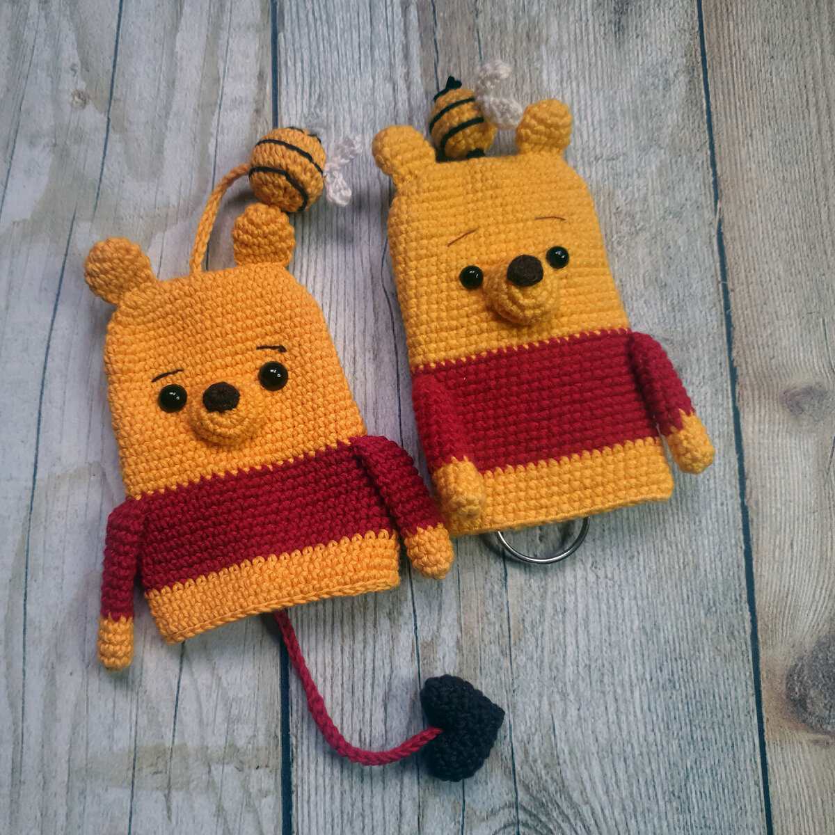 Дорогие друзья!!! Рада Вас приветствовать на своем канале. Предлагаю Вам связать такую замечательную ключницу крючком. Делитесь готовыми работами в комментариях. Условные обозначения: Сбн – столбик без накида Пр. – прибавка (в одну петлю провязываем 2 столбика без накида) Уб. – убавка (из двух петель вывязываем 1 столбик без накида) Вп. – воздушная петля Сс. – соединительный столбик Тело и голова 1. Цепочка из 16 вп. Во вторую петлю от крючка 7 сбн, вп (петлю по цепочке пропускаем), 6 сбн, пр; по другой стороне цепочки 14 сбн, пр [32] 2. Пр, 13 сбн, пр, 17 сбн [34] 3. 15 сбн, 2 пр, 15 сбн, пр [38] 4. 17 сбн, пр, 19, пр [40] 5. 18 сбн, 2 пр, 18 сбн, 2 пр [44] 6. 16 рядов 44 сбн 7. Ввести красный цвет. 9 рядов 44 сбн. 8. Ввести желтый цвет. 5 рядов 44 сбн. 9. Ряд сс. Нить отрезать и спрятать Уши (2 шт) 1. В КА 6 сбн [6] 2. Пр * 6 [12] 3. 2 ряда 12 сбн 4. (уб, 4 сбн) * 2 [10] 5. Через край детали 5 сбн. Нить отрезать, спрятать. Нос Желтая часть: 1. В КА 6 сбн [6] 2. Пр * 6 [12] 3. (пр, сб