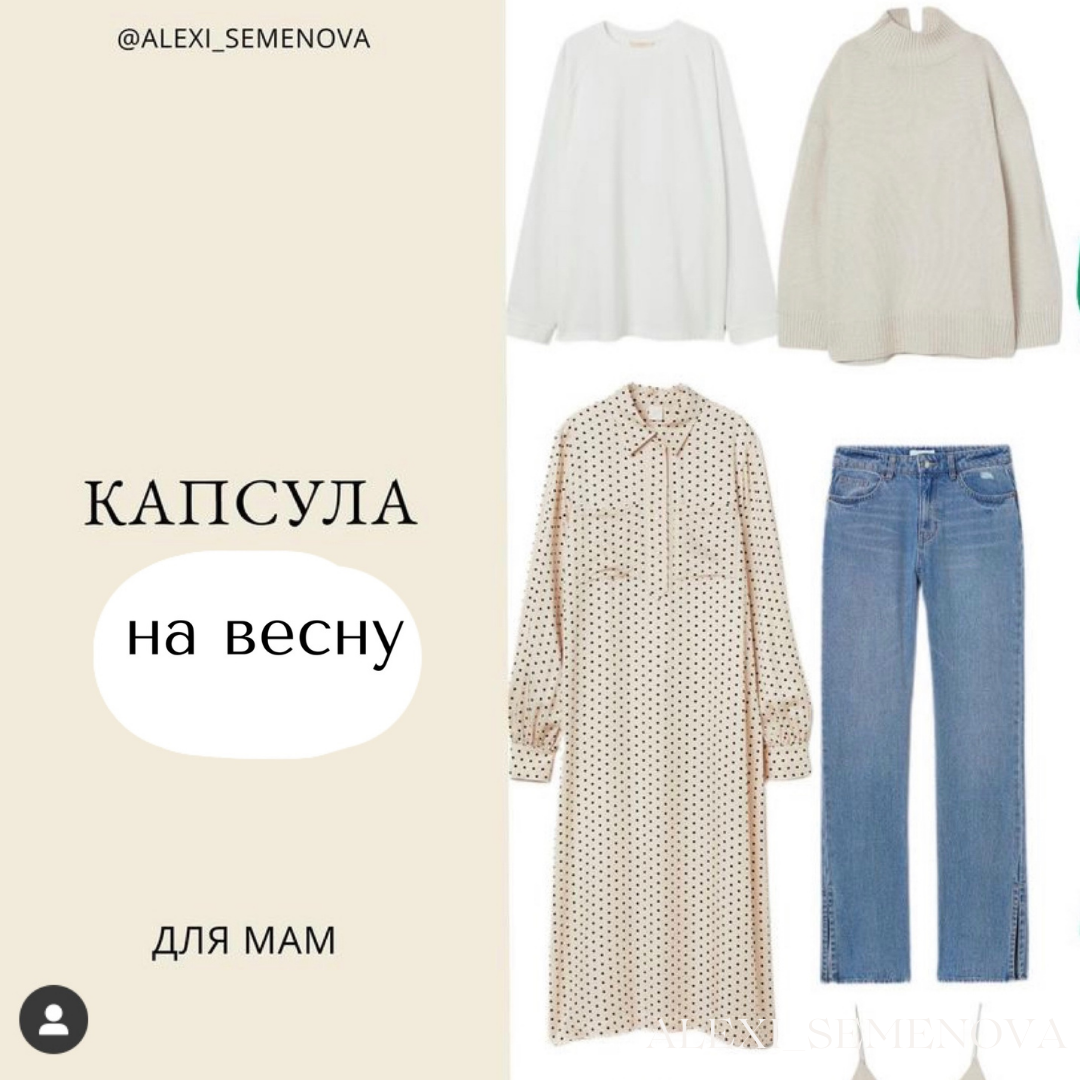 Девушки, всем привет! Предлагаю посмотреть капсулу, которую я составила специально для мамочек. Но и девушкам, в чей образ жизни вписывается спорт, расслабленность и городской кэжуал, тоже будет интересно. Тогда вперед) В этой капсуле все просто и понятно. Основа в цвете - бежевый монохром с акцентом в виде зеленого. По стилю сочетание спорта и классики, от этого комплекты будут смотреться более интересно. И, конечно, же нотка романтики, пригодится для создания женственных аутфитов. Начнем с платья. Фасон свободный, длина миди. Платье можно надеть как на праздник к ребенку в сад, так и сходить на день рождения, а можно и с подругами встретиться. Оно достаточно нейтральное, поэтому придать образу нужное настроение не составит труда. Спортивный костюм с широкими брюками - маст хэв. В капсулу намеренно включила пальто, а не пуховик, чтобы держать баланс и не уйти целиком в спорт. Пальто рекомендую выбирать с рукавом реглан: так будет комфортнее. Добавим стеганую сумку, удобную обувь, и