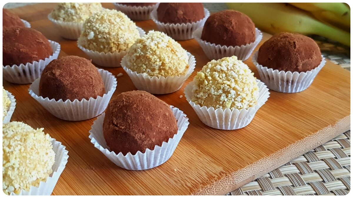 Быстрый и простой рецепт сладостей к чаю. Без выпечки, без сливочного масла лёгкий рецепт к чаю. Мягкие конфеты с бананом рецепт. Список продуктов для приготовления. Дополнительно свободное время и хорошее настроение :) Подробный видеорецепт можно посмотреть тут жмите. Пошаговый процесс приготовления. 1. В чашу измельчителя отправить вафли и арахис. Всё хорошо измельчить до мелкой однородной крошки. Если вафли крупные, разломать на кусочки. Арахис можно заменить на любые другие орехи по вкусу. 2. 1/3 часть крошки отсыпать в отдельную чашу. Банан порезать на кусочки и добавить к оставшейся крошке. Ещё раз все перебить до однородности. Готовую массу переложить в чашу и добавлять к нем порциями 1/3 часть крошки. Каждый раз хорошо перемешивать и добавлять следующую порцию. Масса должна получится плотной и при скатывании шарика не растекаться. 3. Заготовку накрыть пленкой или крышкой и убрать в холодильник на 1-2 часа. 4. После охлаждения, скатать шарики. Размер примерно с грецкий орех -